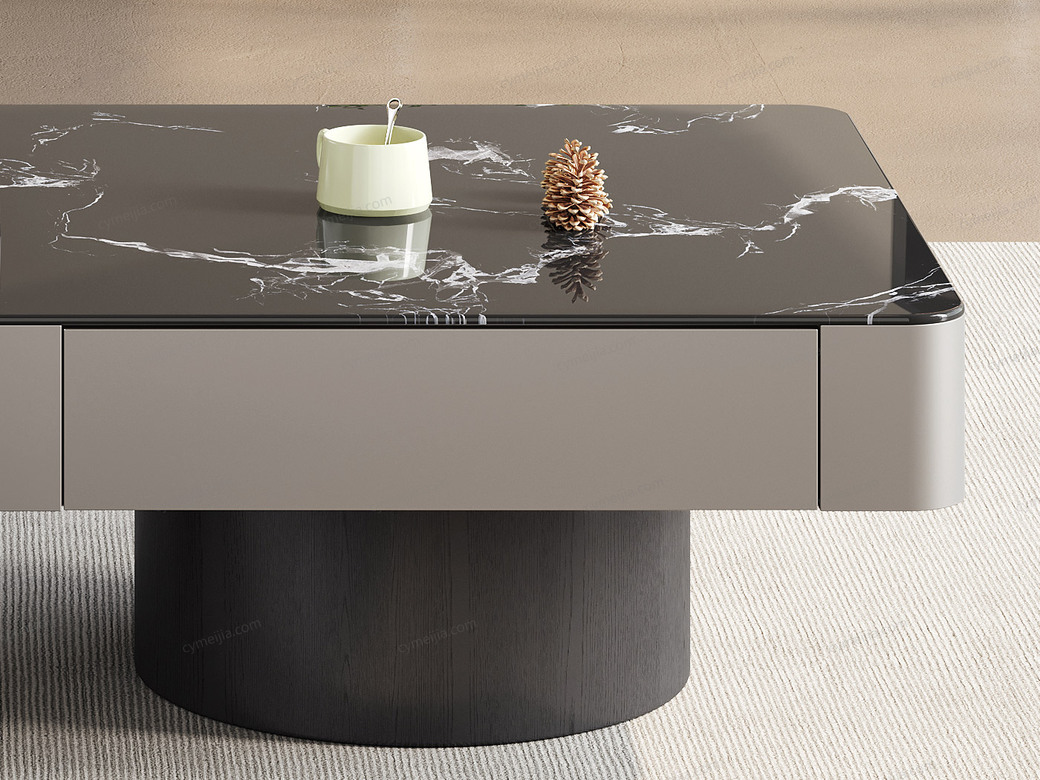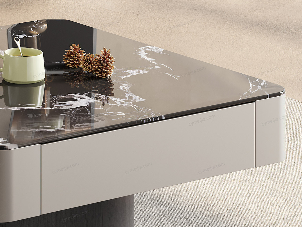 | 产品材质 : | 茶几:黑玫瑰微晶石+红橡木皮+金属烤漆+E1级环保板;角几:白兰玉微晶石+胡桃木皮+E1级环保板 |