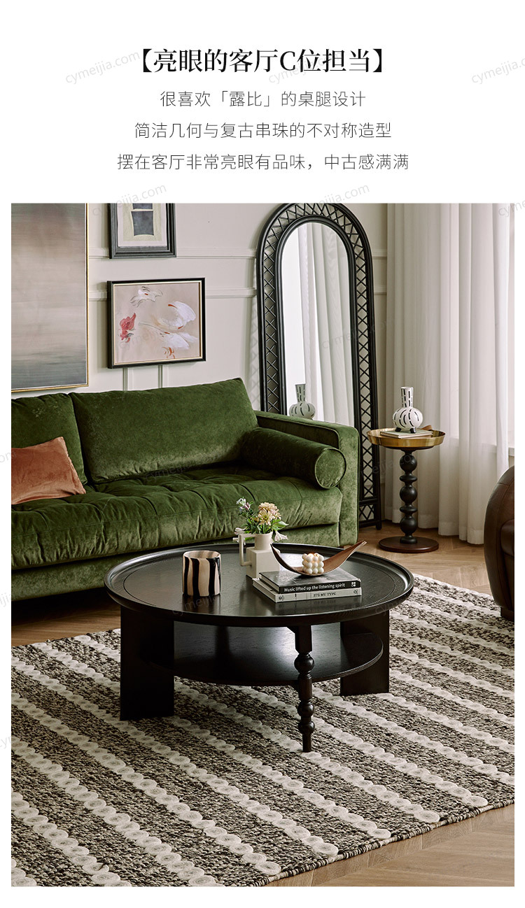 ☀ 串珠桌脚造型:简洁几何与复古串珠的不对称造型,摆进客厅瞬间亮眼提品味。圆润弧形边角贴心防磕碰,满满中古氛围感拉满。