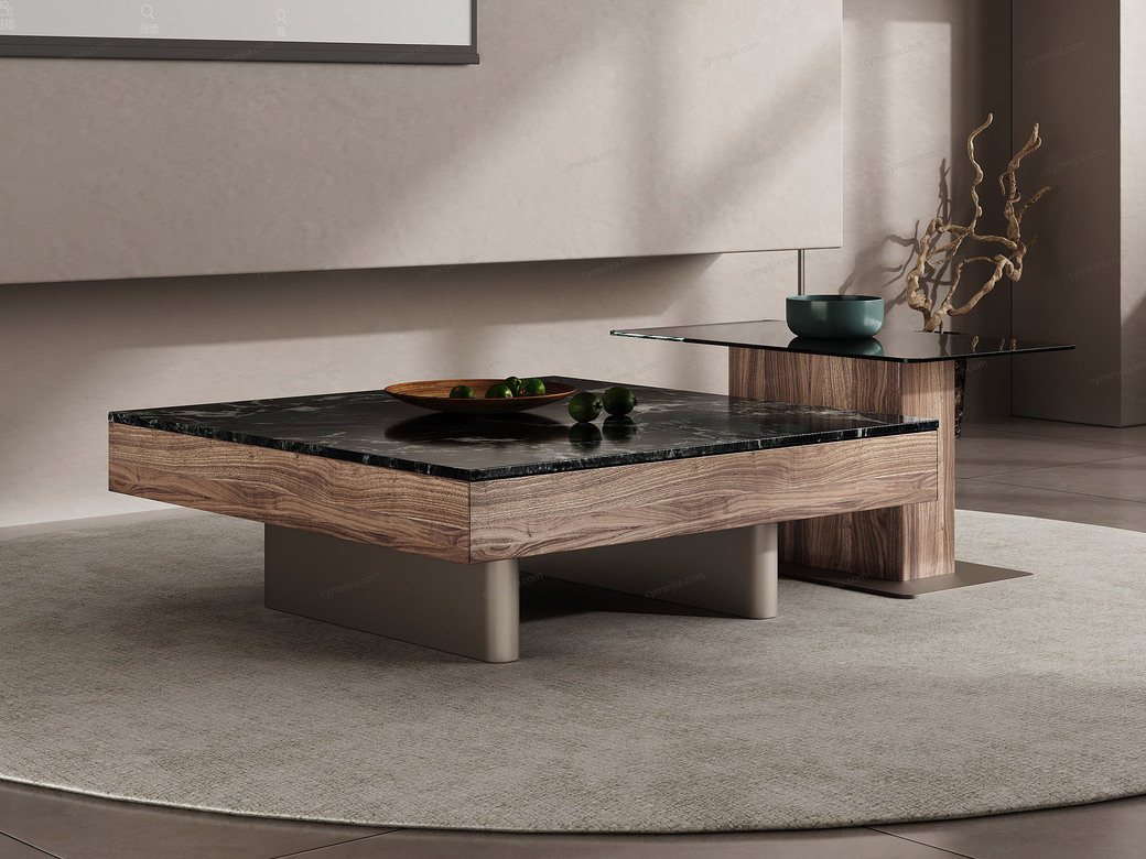 | 产品材质 : | 茶几:大理石+黑胡桃木皮+金属烤漆+E1级环保板;角几:灰玻+黑胡桃木皮+E1级环保板 |