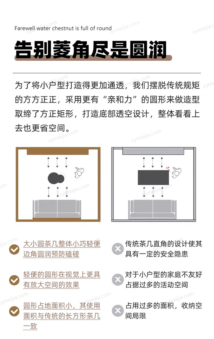 | 规格 : | 茶几:直径850*高350mm;角几:直径500*高450mm |