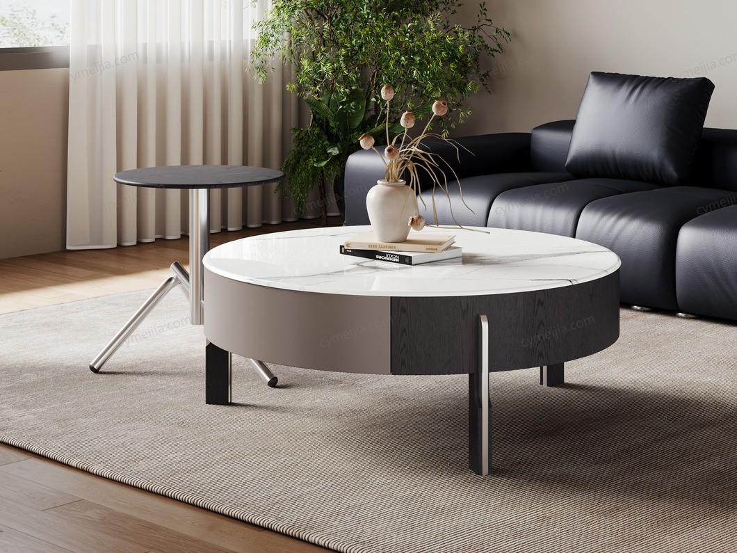 | 产地 : 佛山 | 规格 : 茶几:直径800*高320mm;角几:直径450*高500mm | 产品材质 : 茶几:微晶石+实木木皮+钢琴烤漆+E1级环保板;角几:实木木皮+不锈钢五金+E1级环保板 | 更多参数>> |