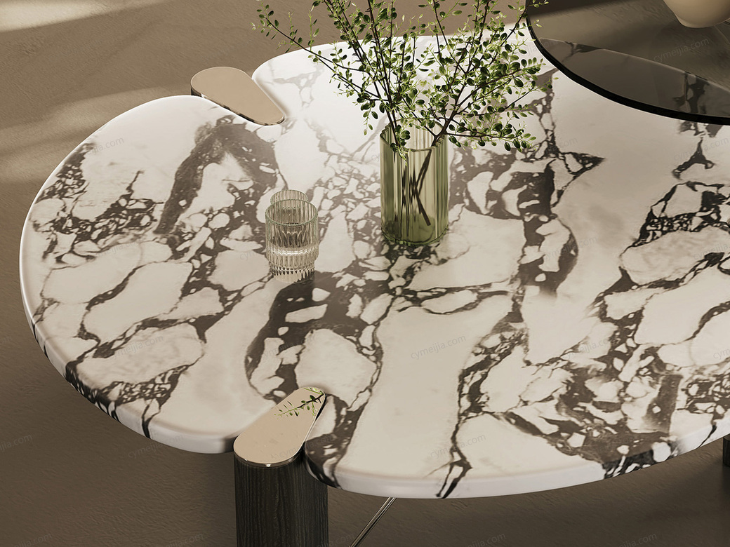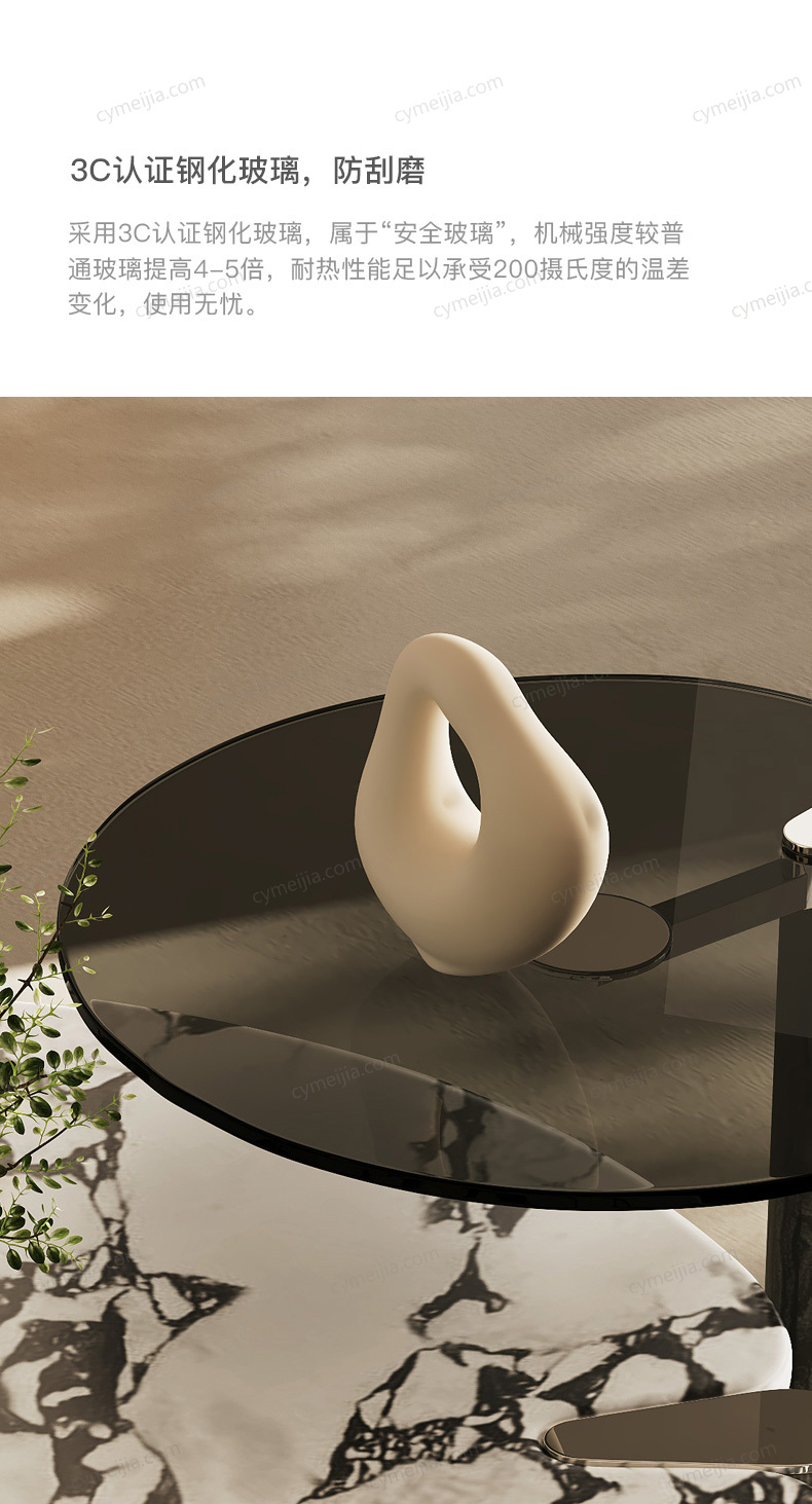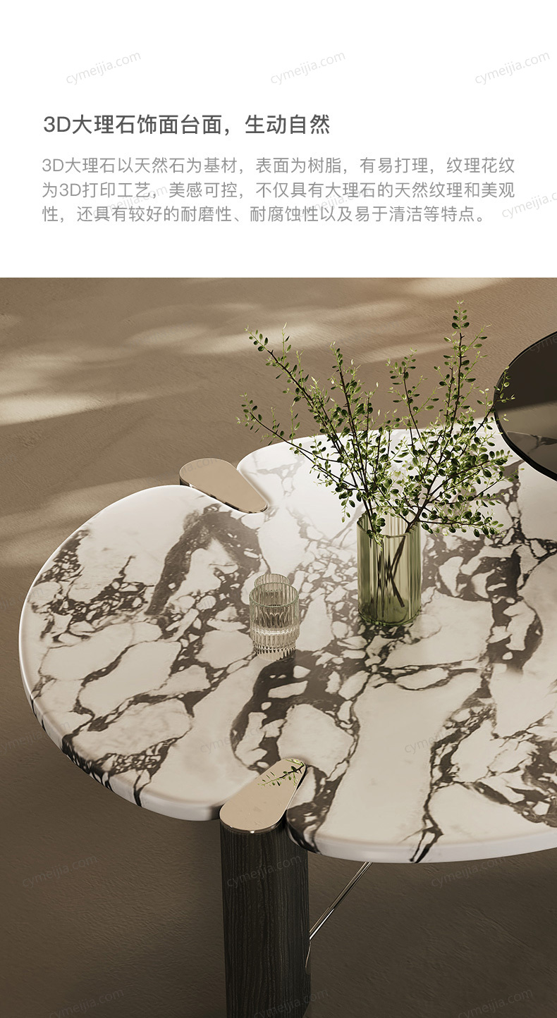 ☀ 大理石台面:纹理生动自然,触感顺滑亲肤无冰冷感,自带高端家居质感。日常使用耐刮耐磨,清洁打理轻松省心,适配多种家装风格。