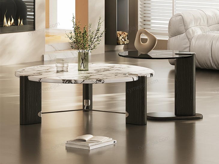 | 产地 : 佛山 | 规格 : 茶几:直径900*高320mm;角几:直径500*高410mm | 产品材质 : 人造大理石+实木脚 | 更多参数>> |