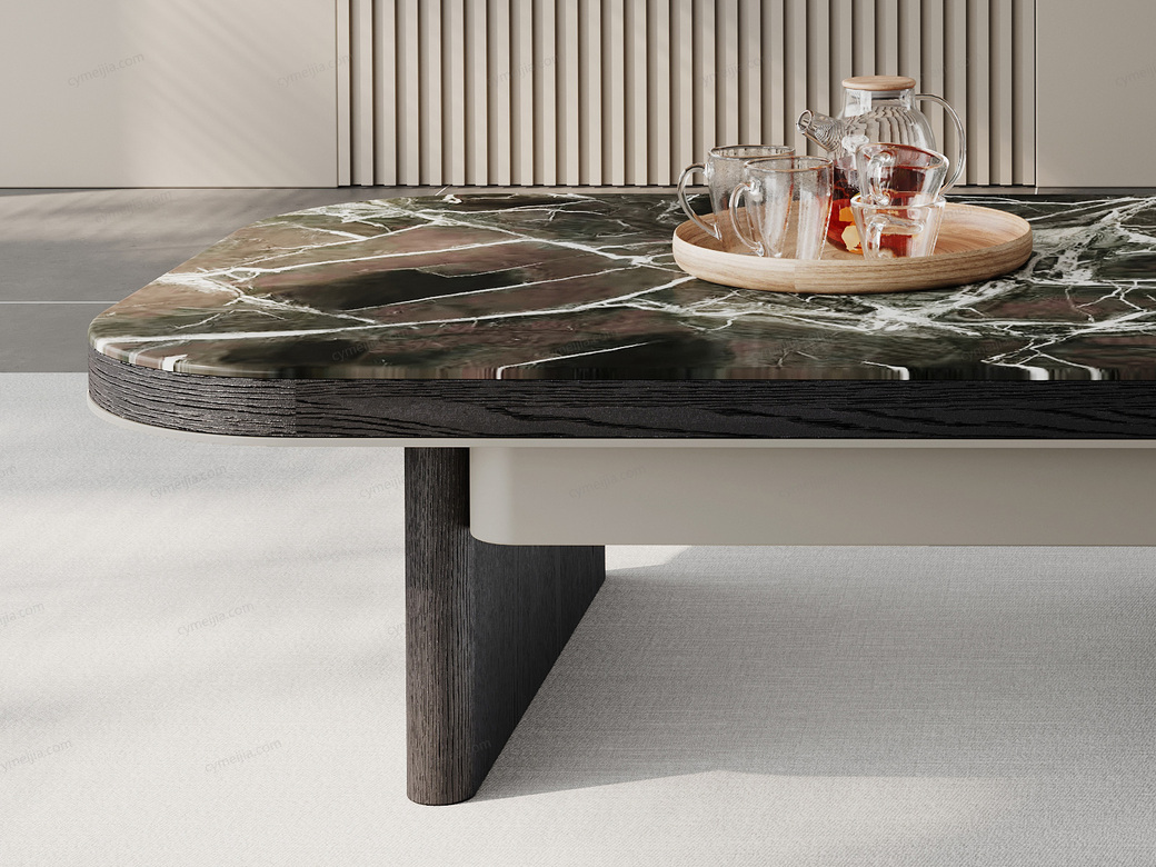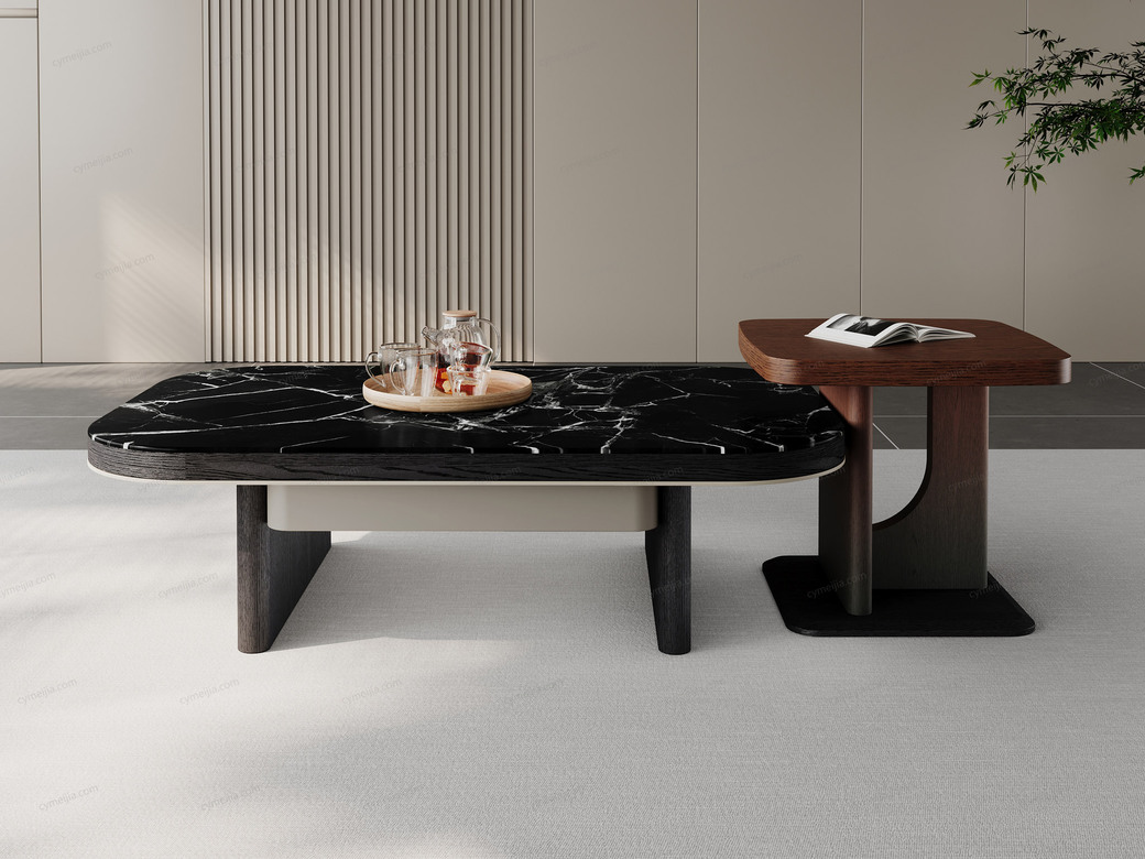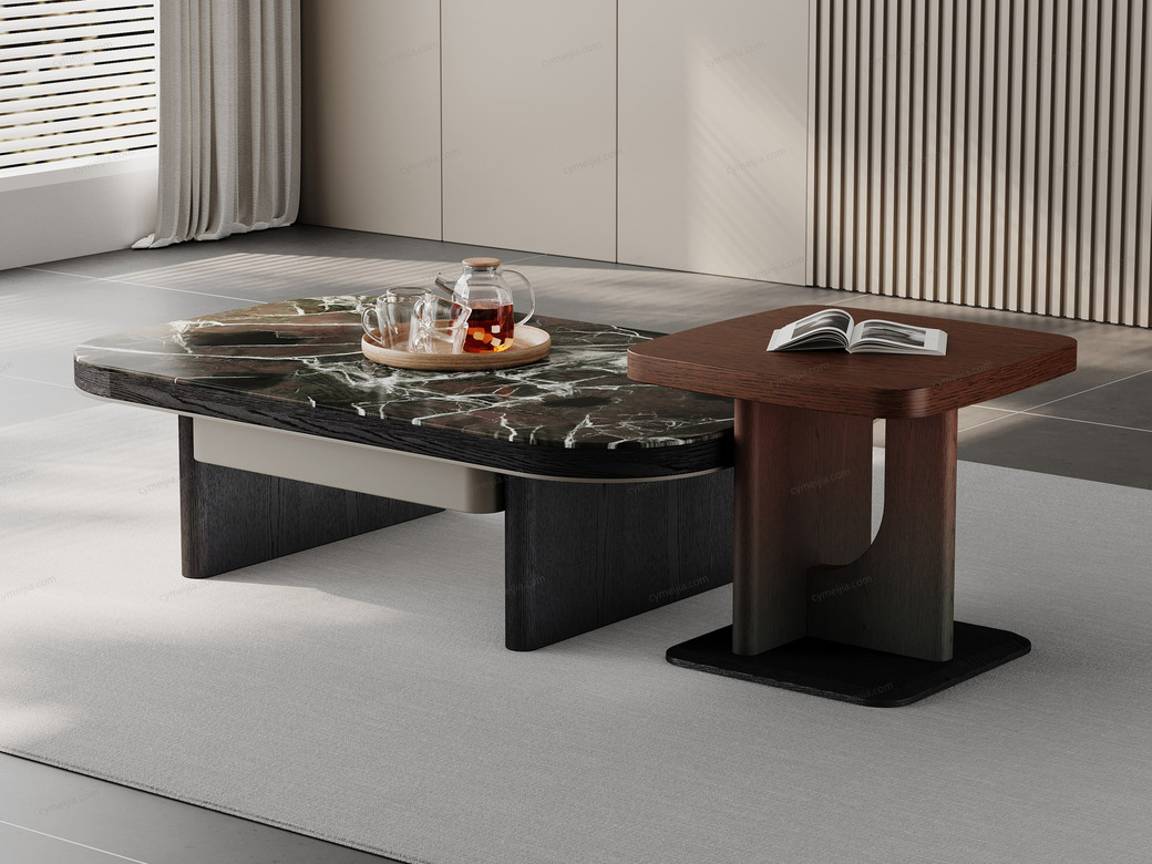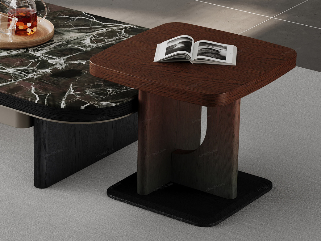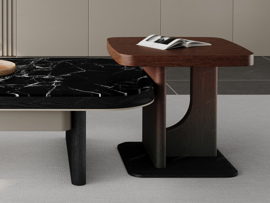 | 产品材质 : | 茶几:微晶石+黑橡木皮+金属漆+E1级环保板;角几:渐变色红橡木皮+E1级环保板 |
