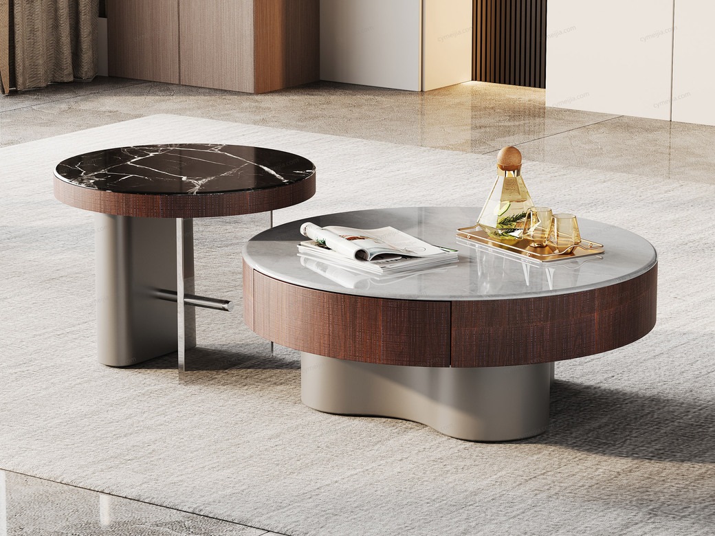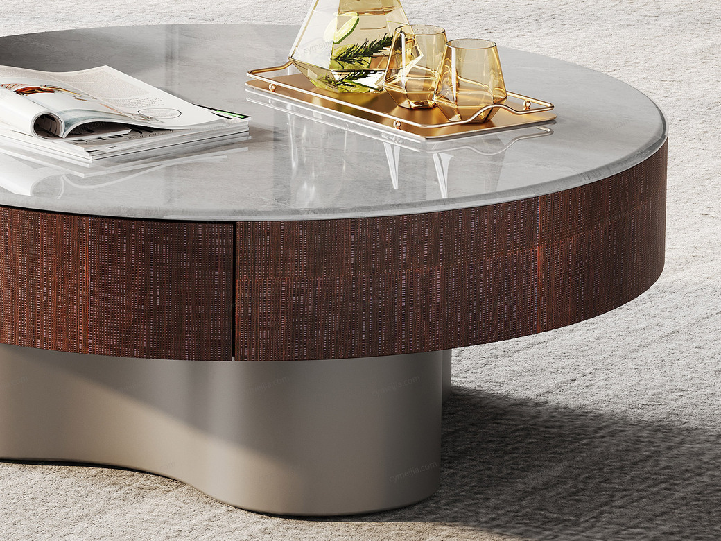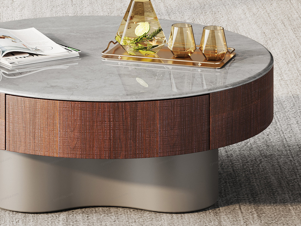 | 产地 : 佛山 | 规格 : 径900*高360mm | 产品材质 : 微晶石+艺术胡桃木皮+金属漆+E1级环保板 | 更多参数>> |
