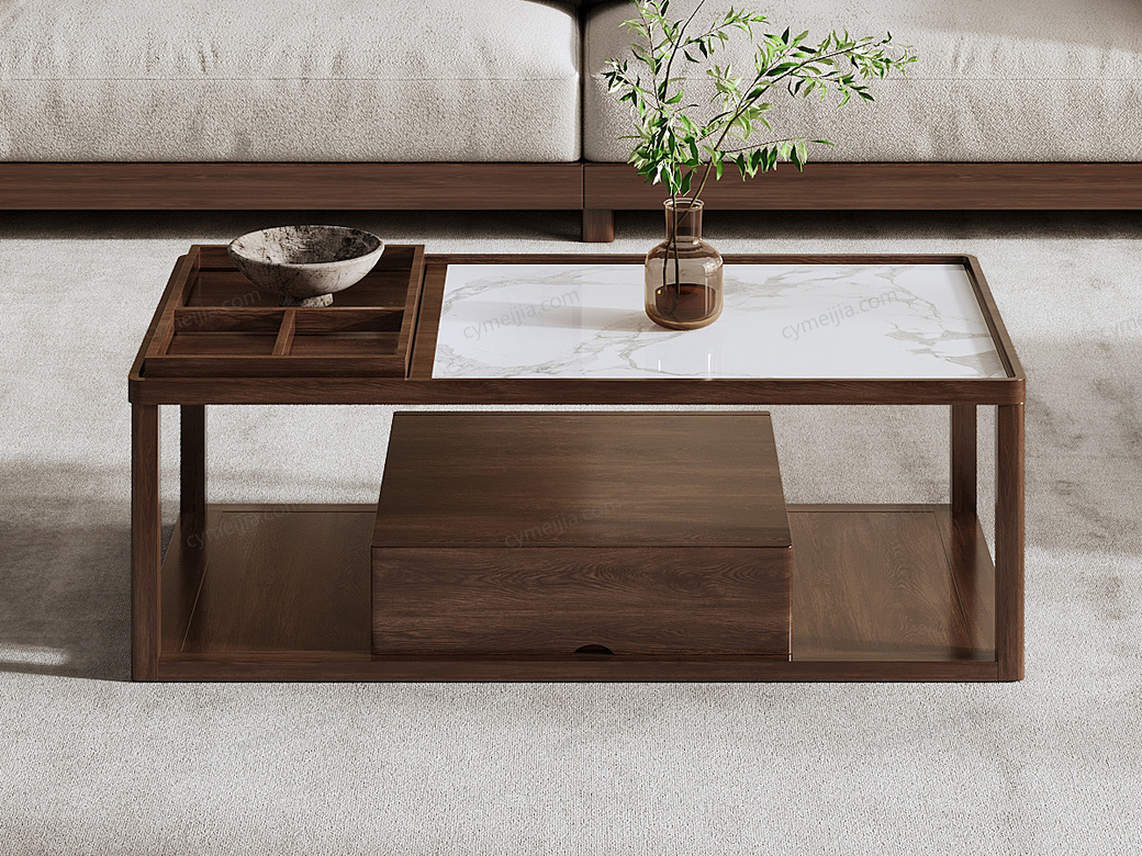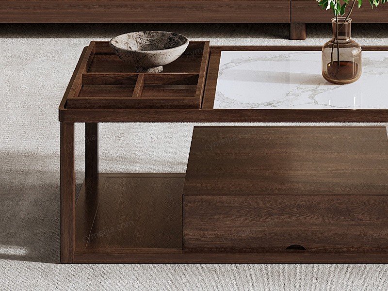 | 产品材质 : | 白蜡木+岩板+松木抽屉+实木多层板 |