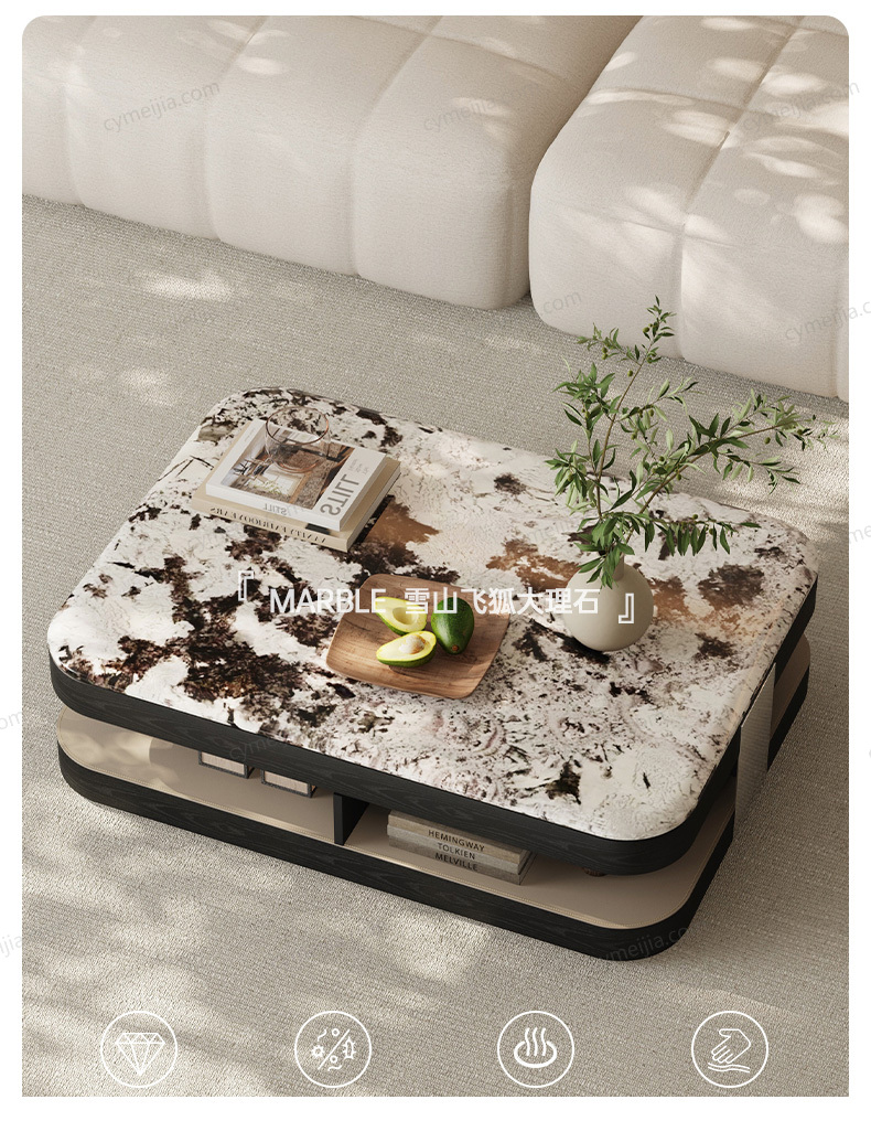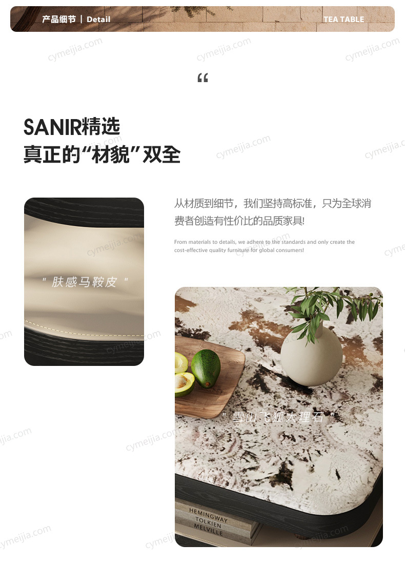 | 产地 : 佛山 | 规格 : 长1100*宽800*高302mm | 产品材质 : 雪山飞狐人造大理石+马鞍皮+不锈钢装饰条+实木木皮+E1级环保板 | 更多参数>> |
