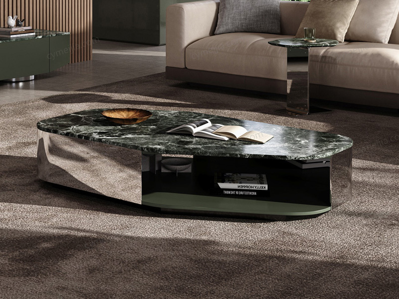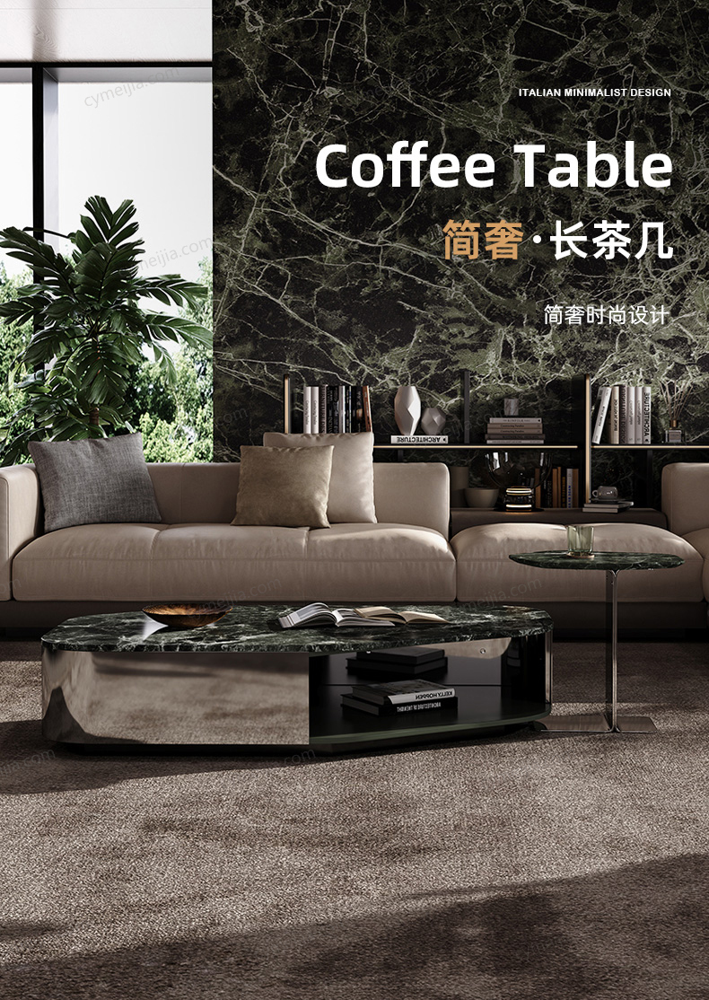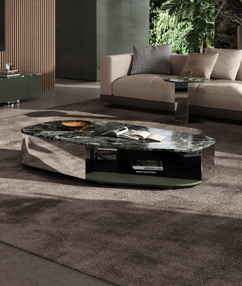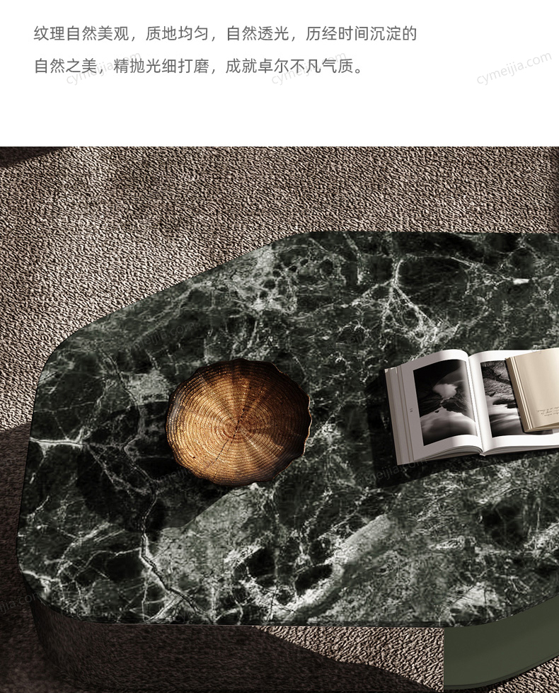 ☀ 高奢纹理质感:以极简风格为基底,搭配纹理均匀美观的普拉达绿大理石台面,自带轻奢高级感,能自然融入现代、轻奢等多种家居风格。