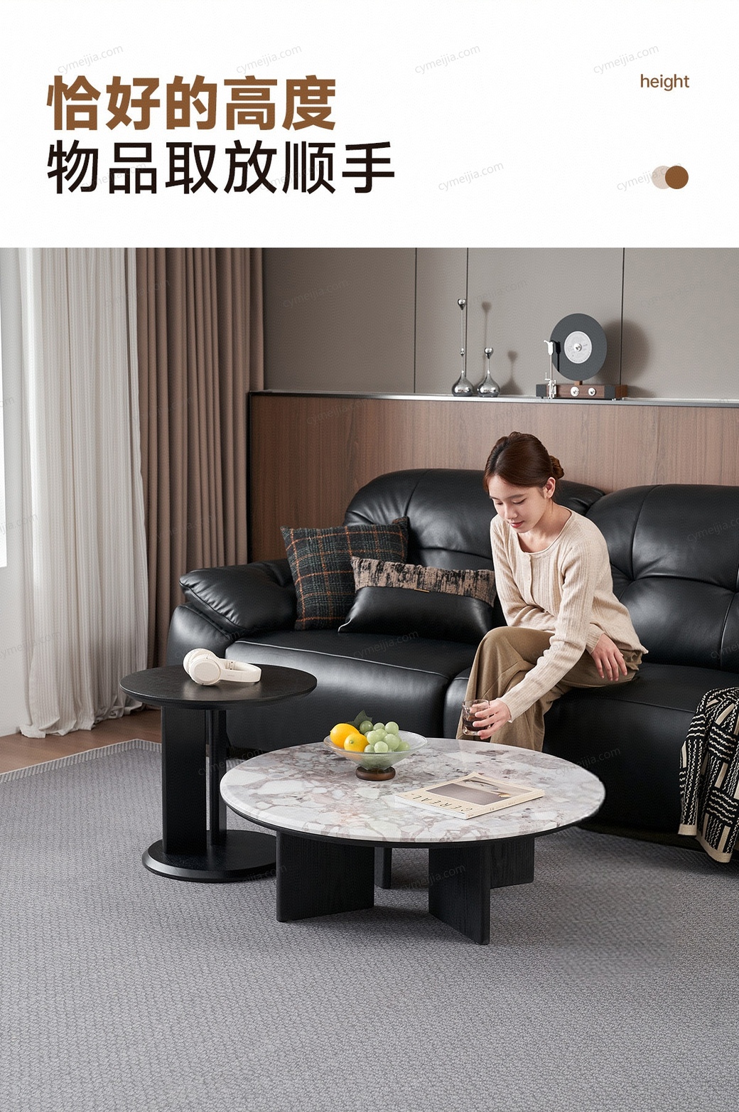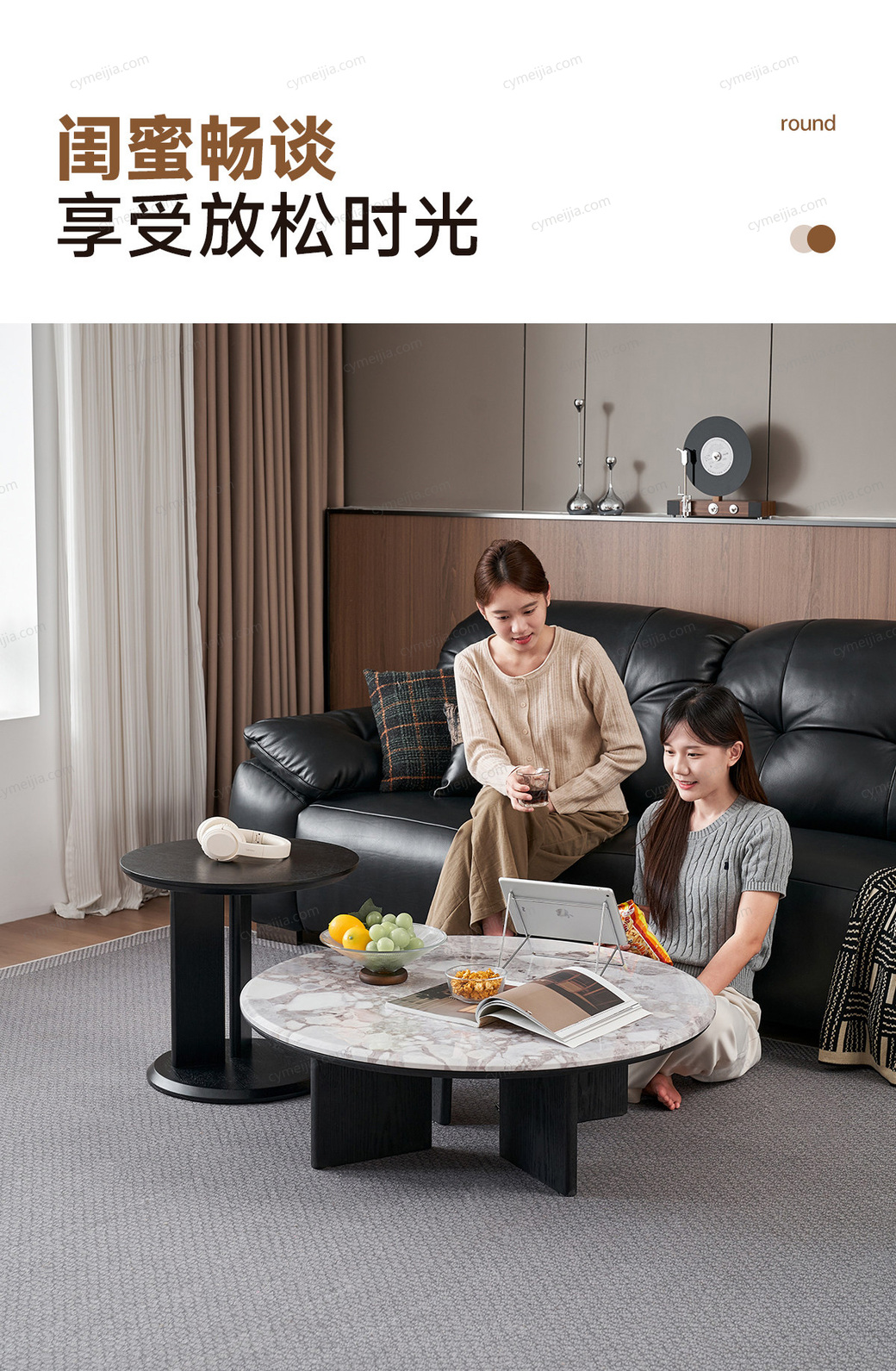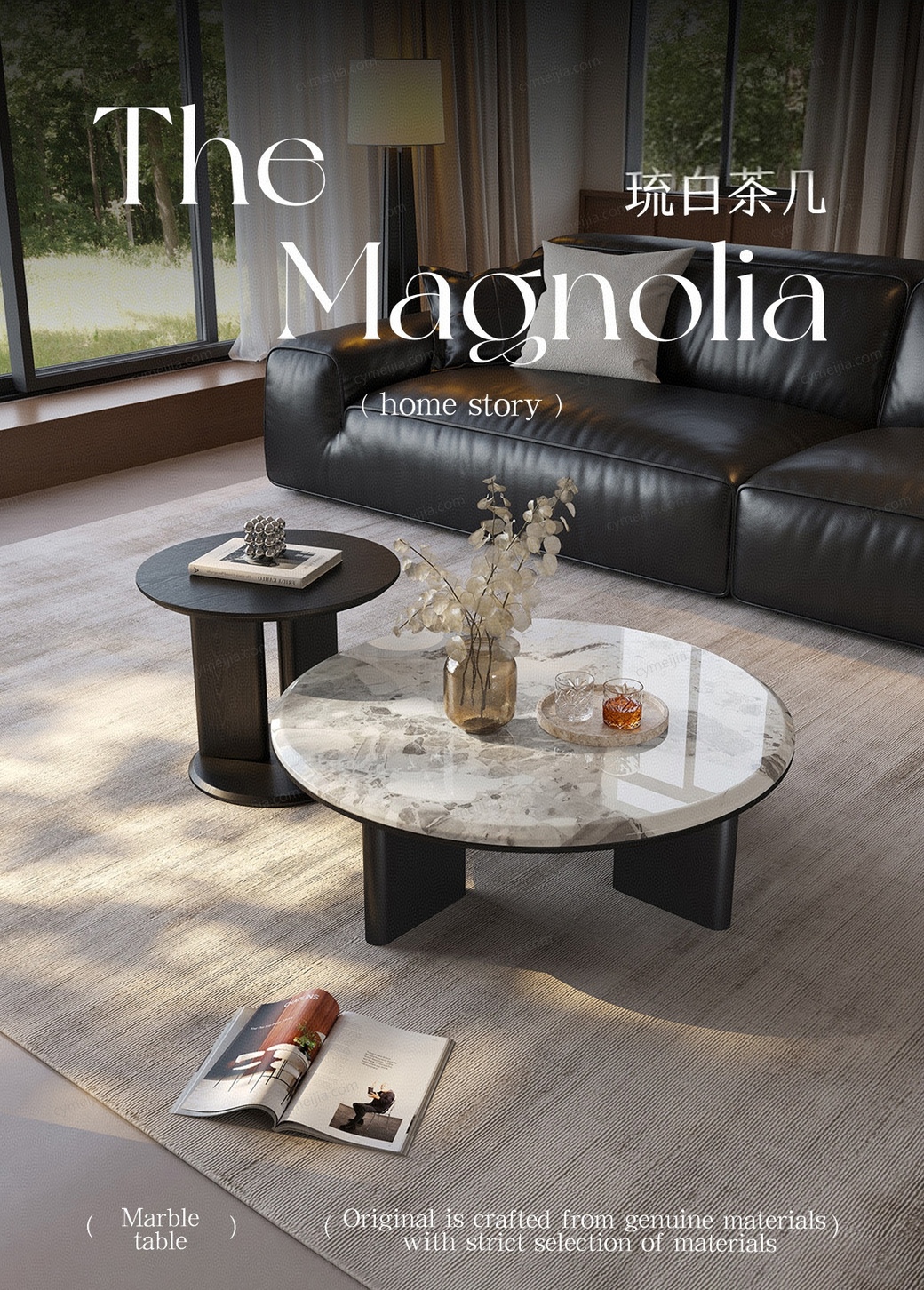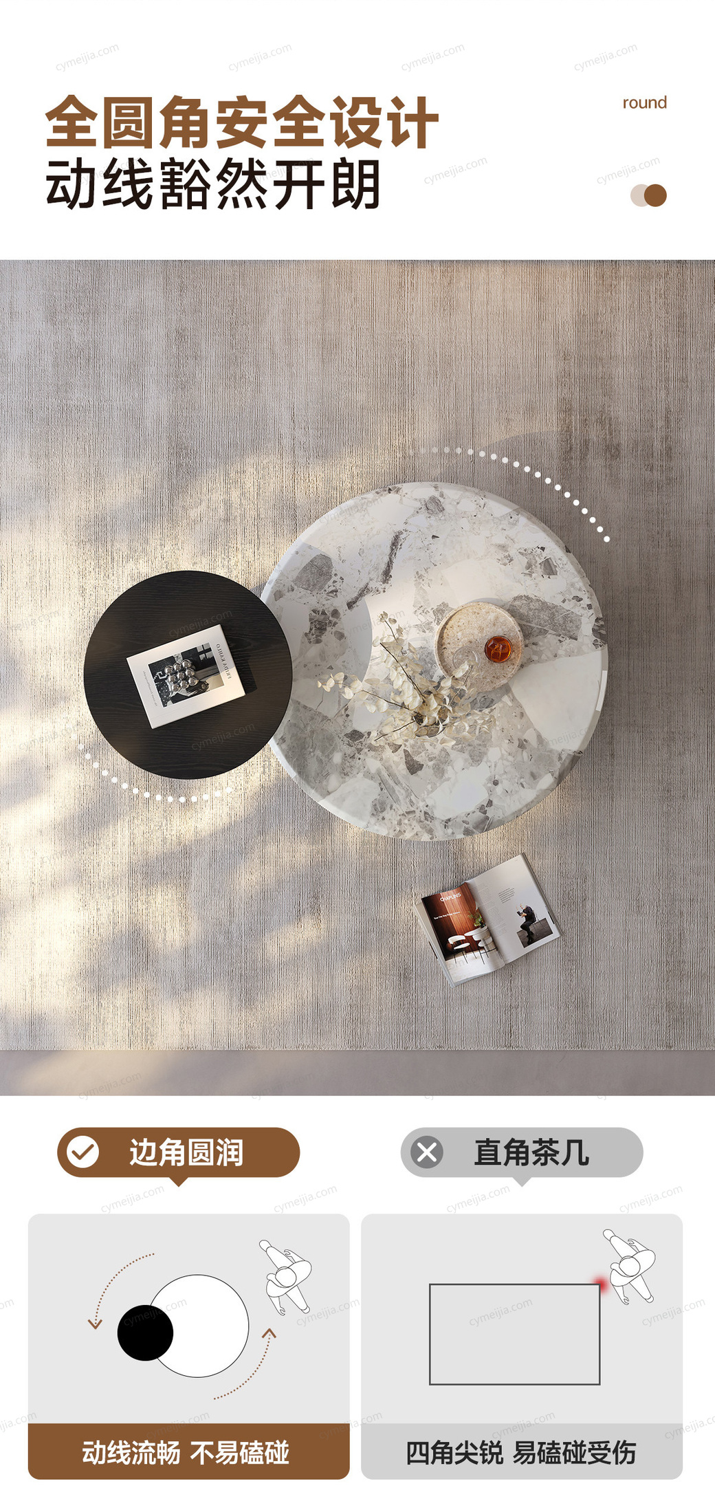 | 规格 : | 大茶几:直径900*高度300mm;角几:长500mm*高465mm |