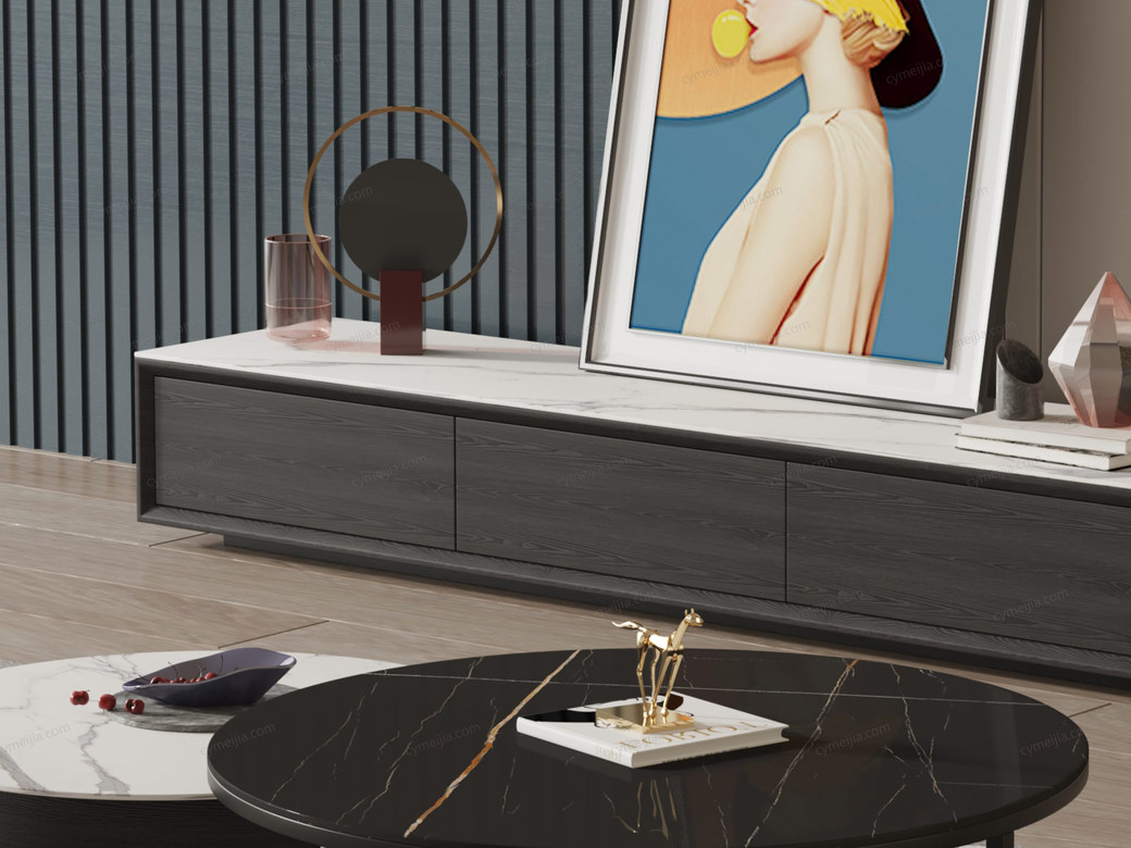 | 产品材质 : | 中纤板(MDF)贴木皮+碳素钢脚架+哑光岩板6mm |