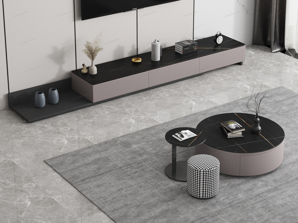 | 产品材质 : | 柜体中纤板贴皮+台面哑光岩板6mm+碳素钢框架 |