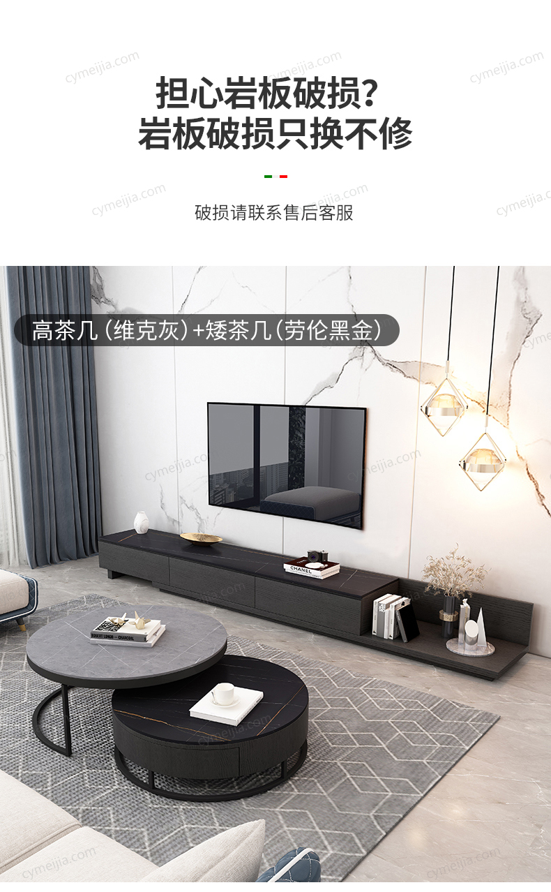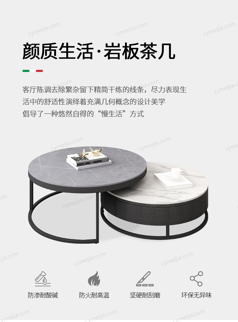 | 产品材质 : | 哑光岩板台面+实木抽屉+磨砂碳素钢脚 |