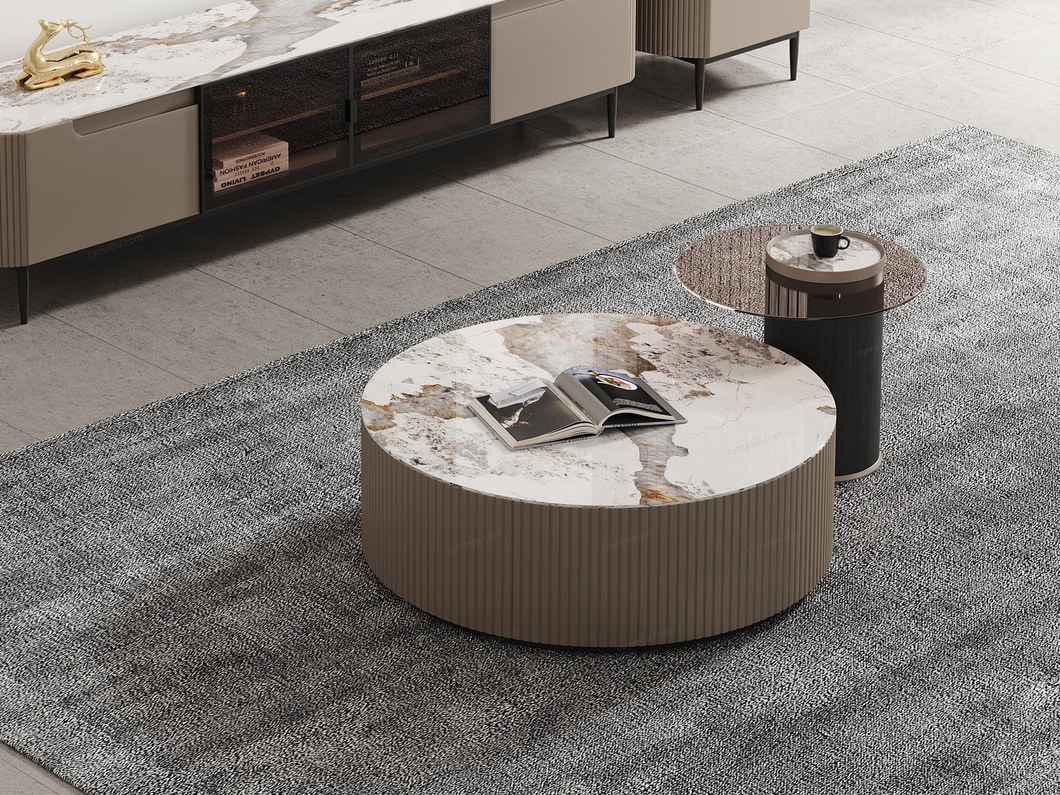 | 产地 : 佛山 | 规格 : 大圆:直径900*高310mm;小圆:直径600*高390mm | 产品材质 : 哑光烤漆+6MM哑光岩板+茶色玻璃 | 更多参数>> |