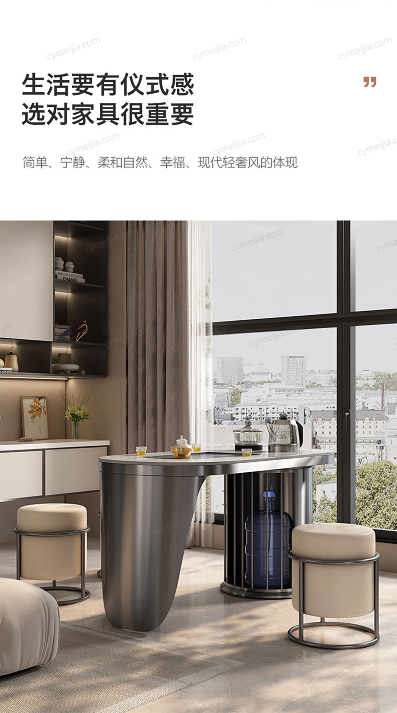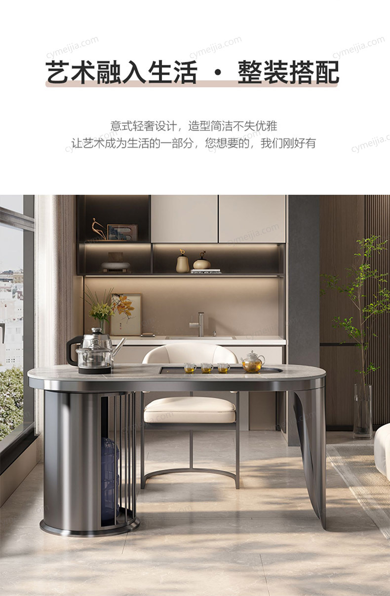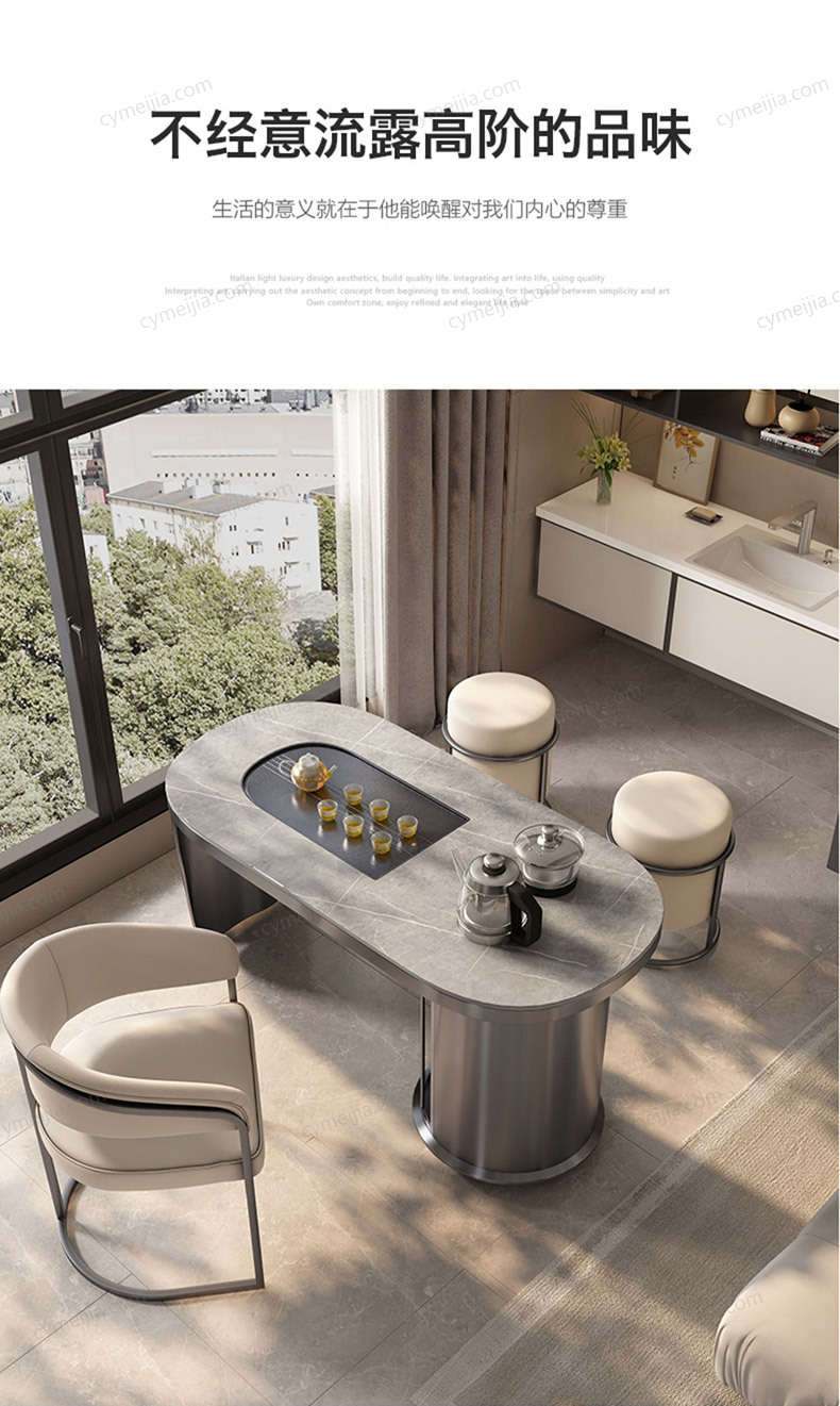 | 产品材质 : | 岩板面+石茶盘+不锈钢 |