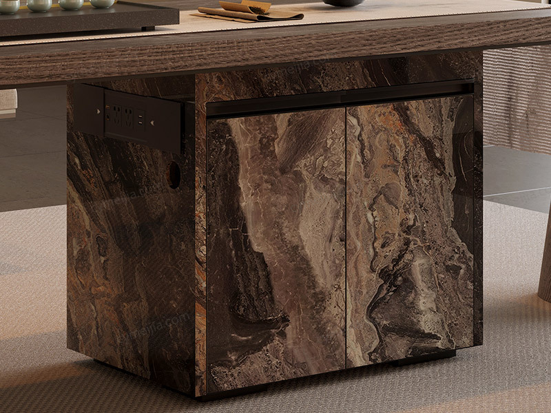 | 产品材质 : | 面板:50MM实木多层板贴白蜡木木皮半透灰(全平面);右向柜子:威尼斯棕岩板多层实木板柜(能放饮水桶和废水桶);脚架:实木多层板+外贴白蜡木木皮半透灰+不锈钢底框 |