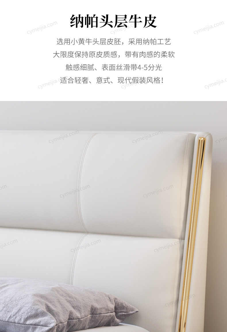 | 产品材质 : | 床头仿真皮+实木夹板内框架+10公分松木排骨架+高回弹海绵 |