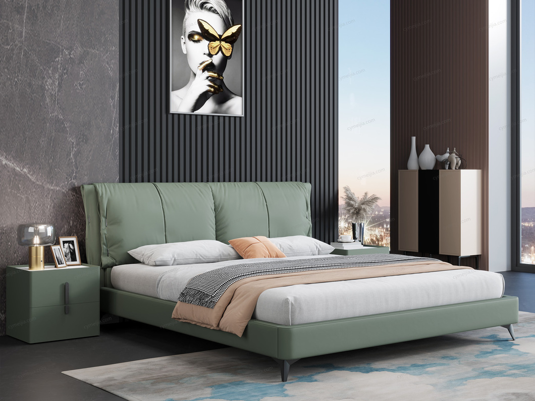 | 产品材质 : | 接触面进口头层黄牛皮+俄罗斯落叶松实木框架+高密度海棉+碳素钢脚+10公分松木排骨架 |