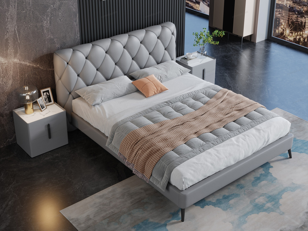 | 产品材质 : | 仿真皮+俄罗斯落叶松实木框架+高密度海棉+碳素钢脚+10公分松木排骨架 |