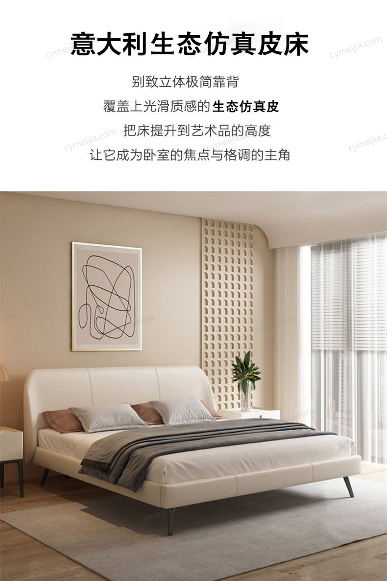 | 产品材质 : | 仿真皮+高密度海绵+俄罗斯落叶松实木框架+碳素钢脚+10公分松木排骨架 |