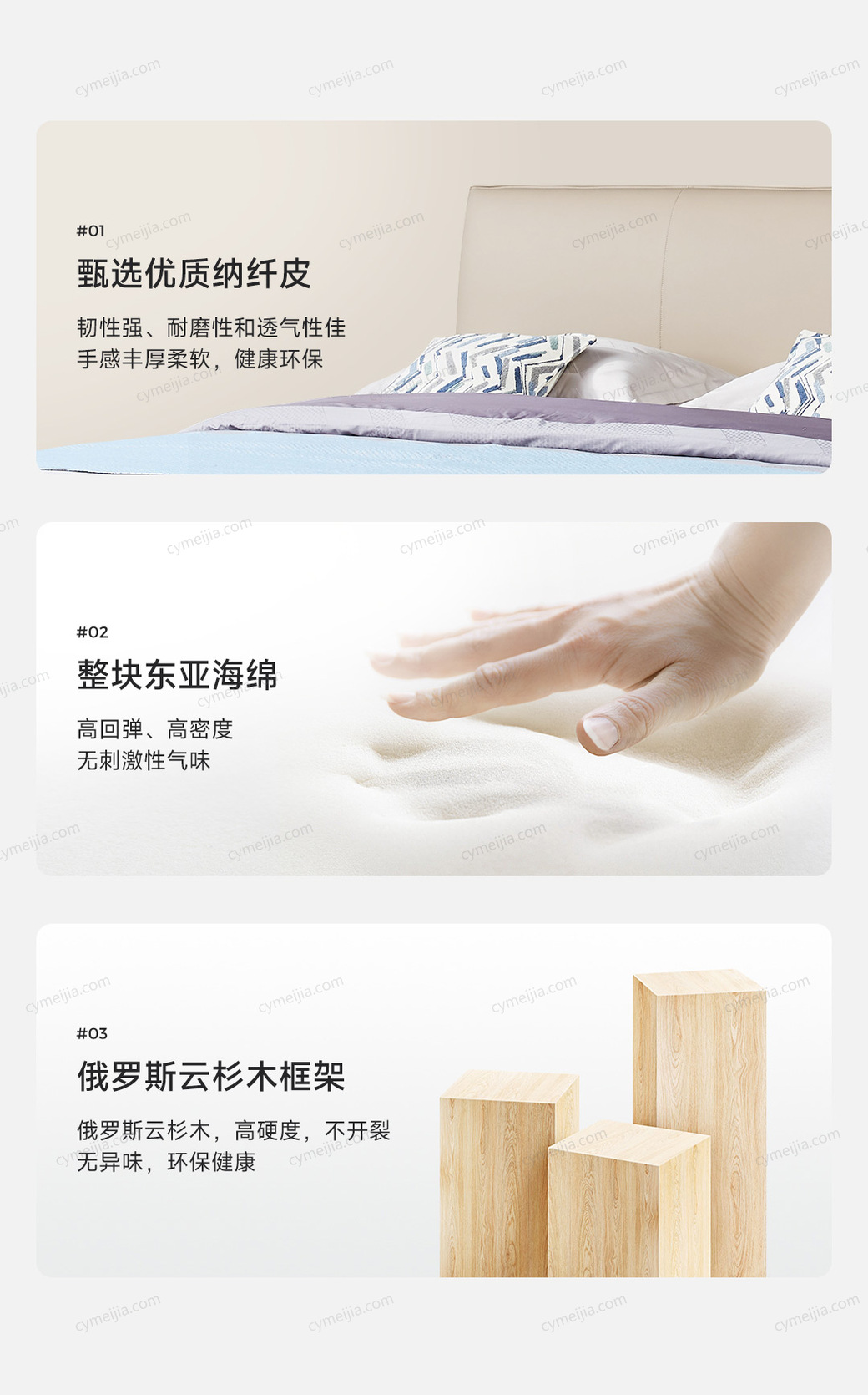 | 产品材质 : | 接触面肤感皮+俄罗斯云杉木框架+东亚海绵 |