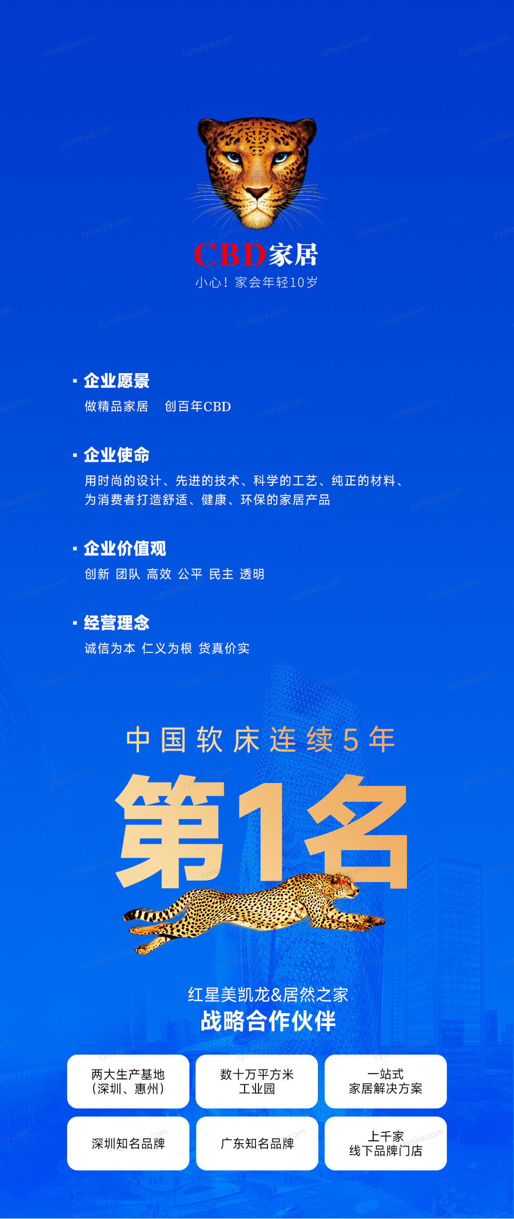 CBD家居秉承为生活而设计的理念,依托自然环保的原材、与时俱新的设计,为消费者打造健康舒适的家,也圆梦消费者对向往生活的追求 CBD家居的slogan—— “小心!家会年轻十岁”同样彰显了CBD家居做精品家居的初心: 打造年轻化的家,给人年轻化的心态。