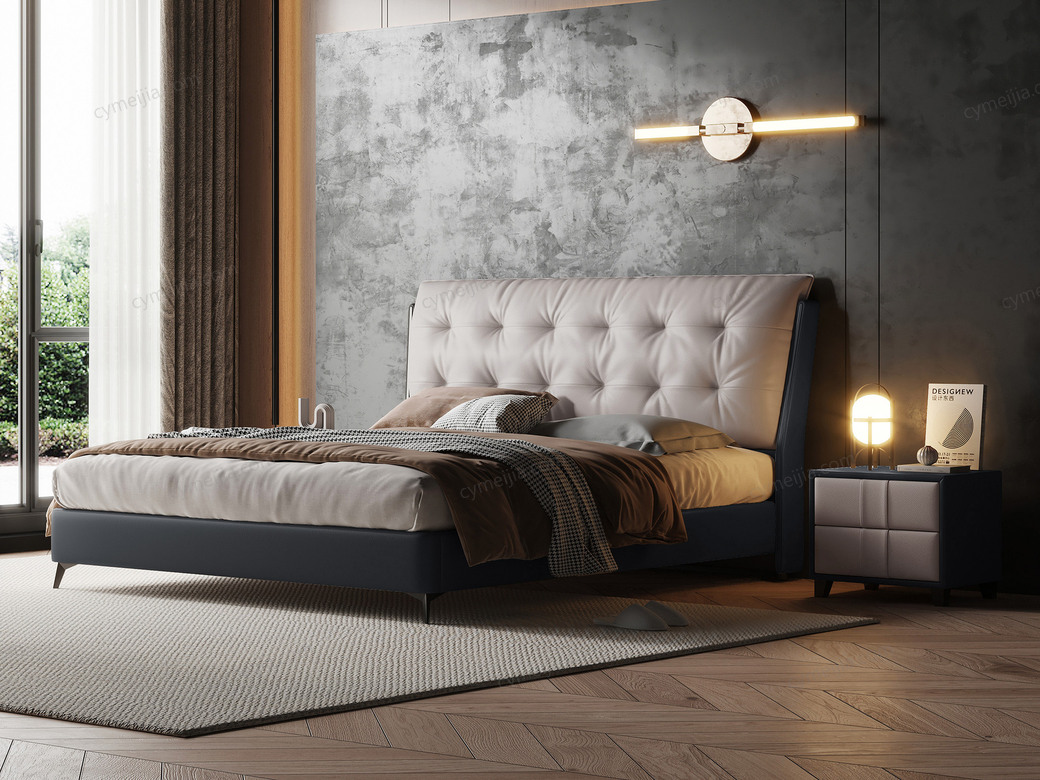 | 产品材质 : | 仿真皮+高密度海绵+俄罗斯落叶松实木框架+碳素钢脚+10公分松木排骨架 |