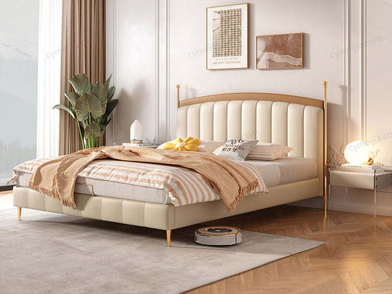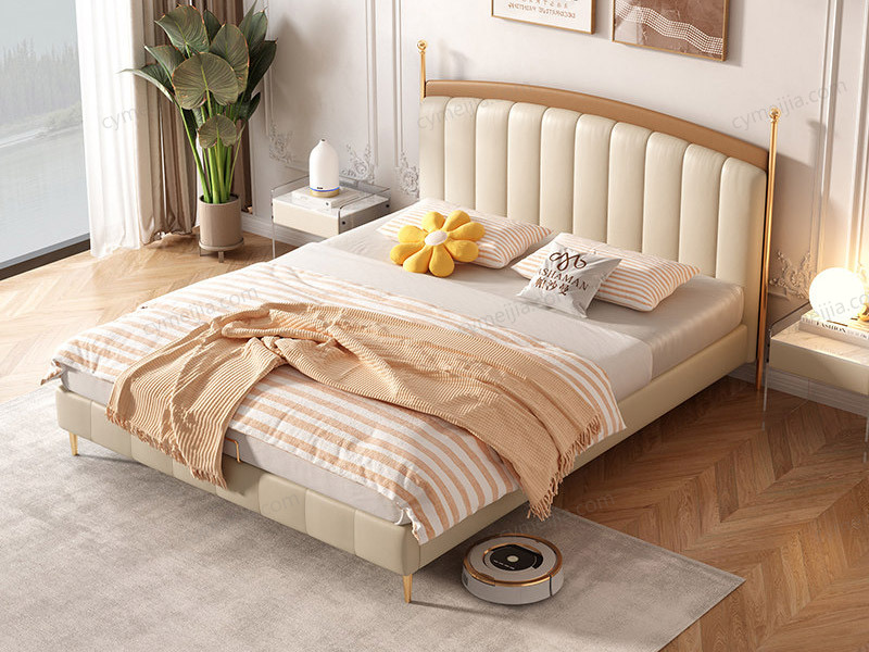 | 产品材质 : | 科技布+高密度海绵+俄罗斯松木框架+实木排骨架+15CM钛金色不锈钢床脚 |