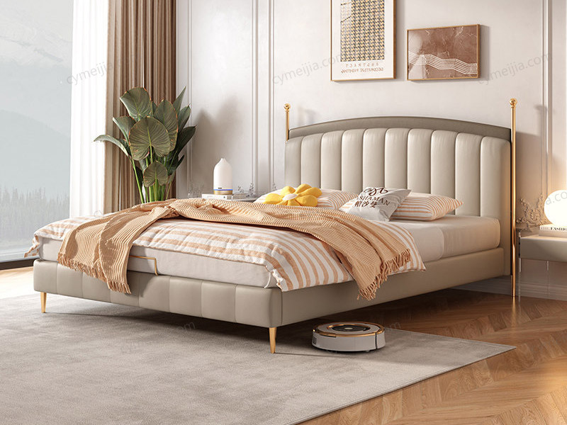 | 产品材质 : | 科技布+高密度海绵+俄罗斯松木框架+实木排骨架+15CM钛金色不锈钢床脚 |