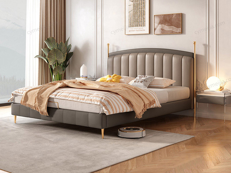 | 产品材质 : | 科技布+高密度海绵+俄罗斯松木框架+实木排骨架+15CM钛金色不锈钢床脚 |