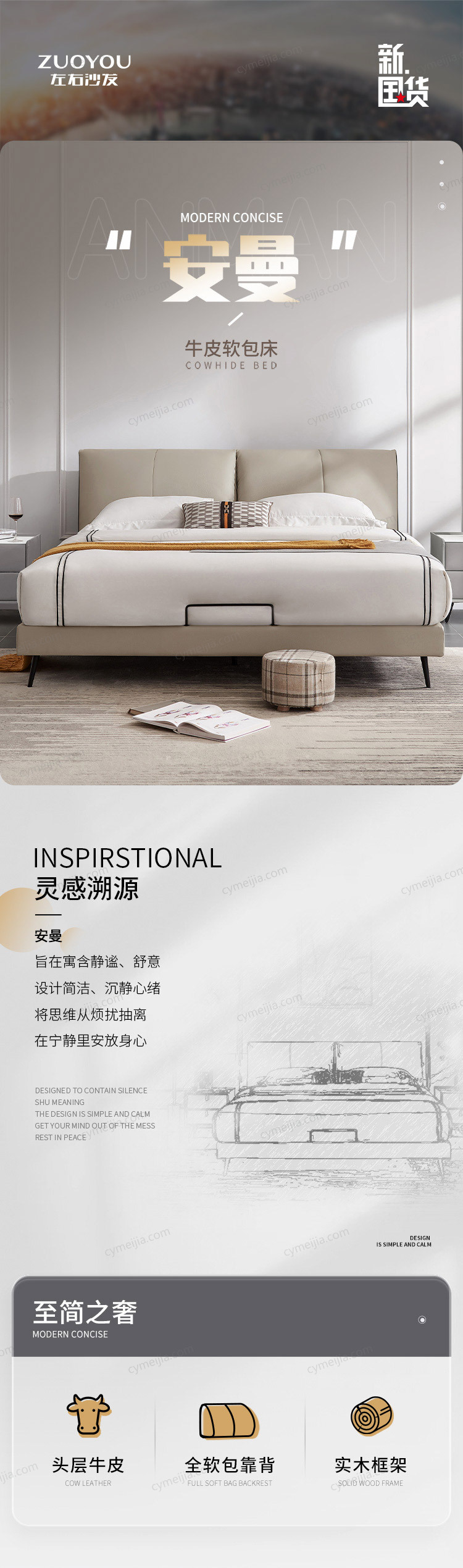| 产品材质 : | 接触面头层牛皮+环保皮+松木框架+金属高脚 |