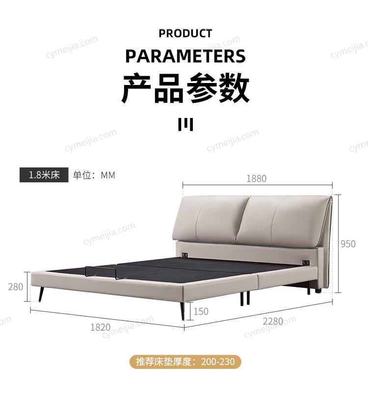 | 适配床垫 : | 长2000*宽1500*高200-220mm |