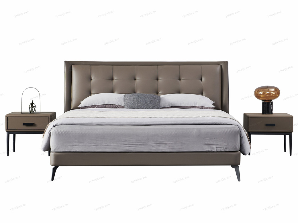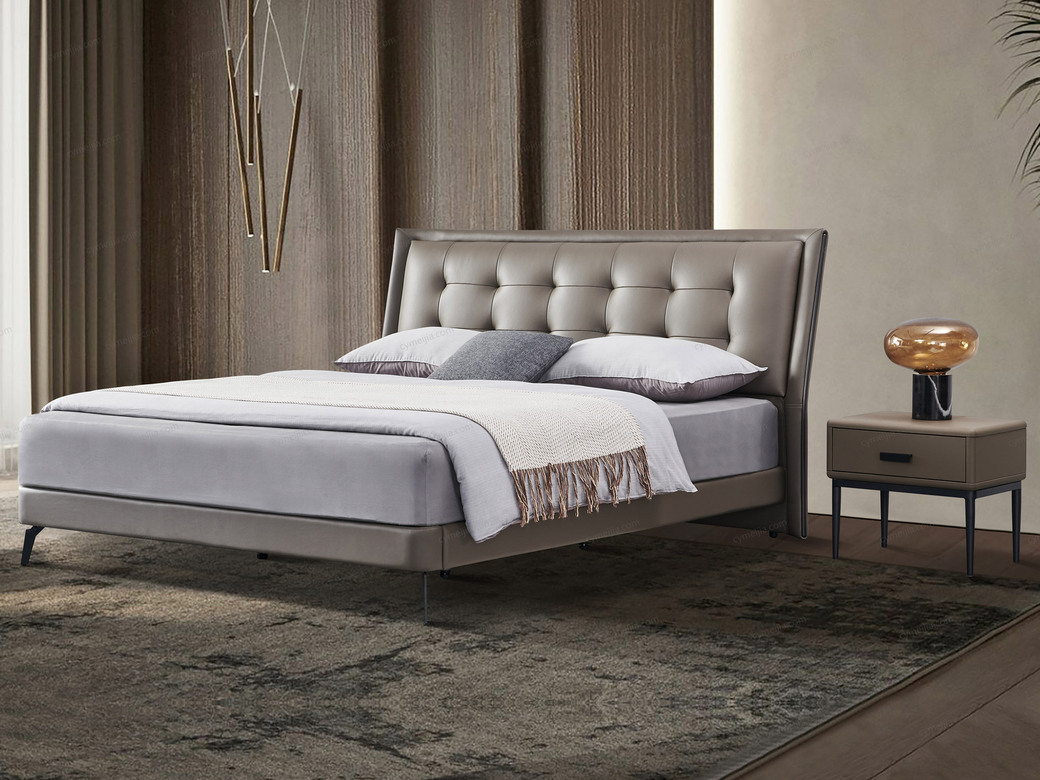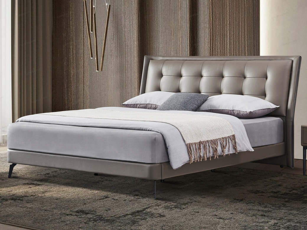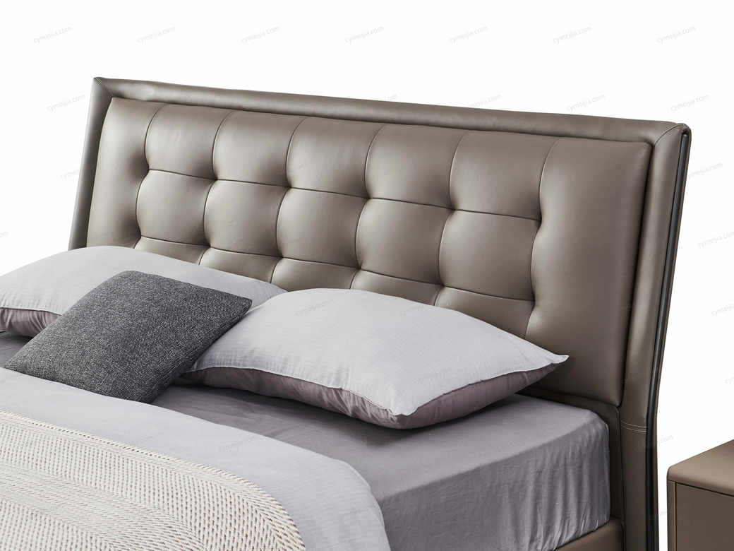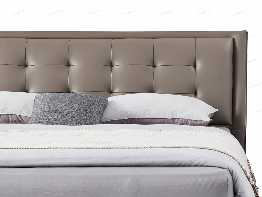 | 产品材质 : | 接触面头层牛皮+进口落叶松实木床框架+高回弹海棉+10公分松木排骨架 |