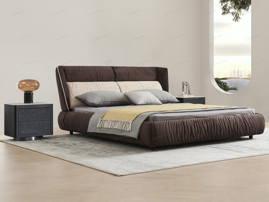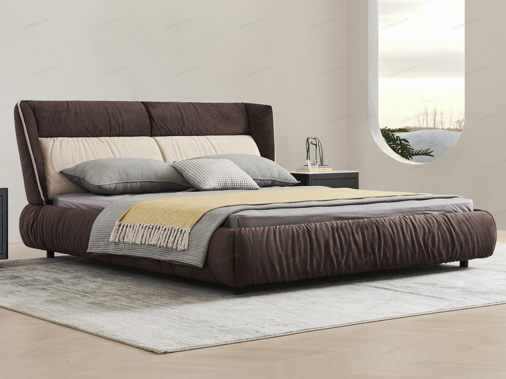 | 产品材质 : | 麂皮绒布+进口落叶松实木床框架+高回弹海棉+10公分松木排骨架 |