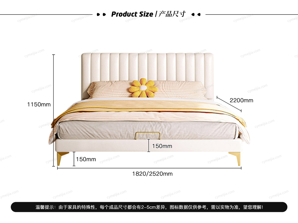 | 适配床垫 : | 长2000*宽1500*高220mm |