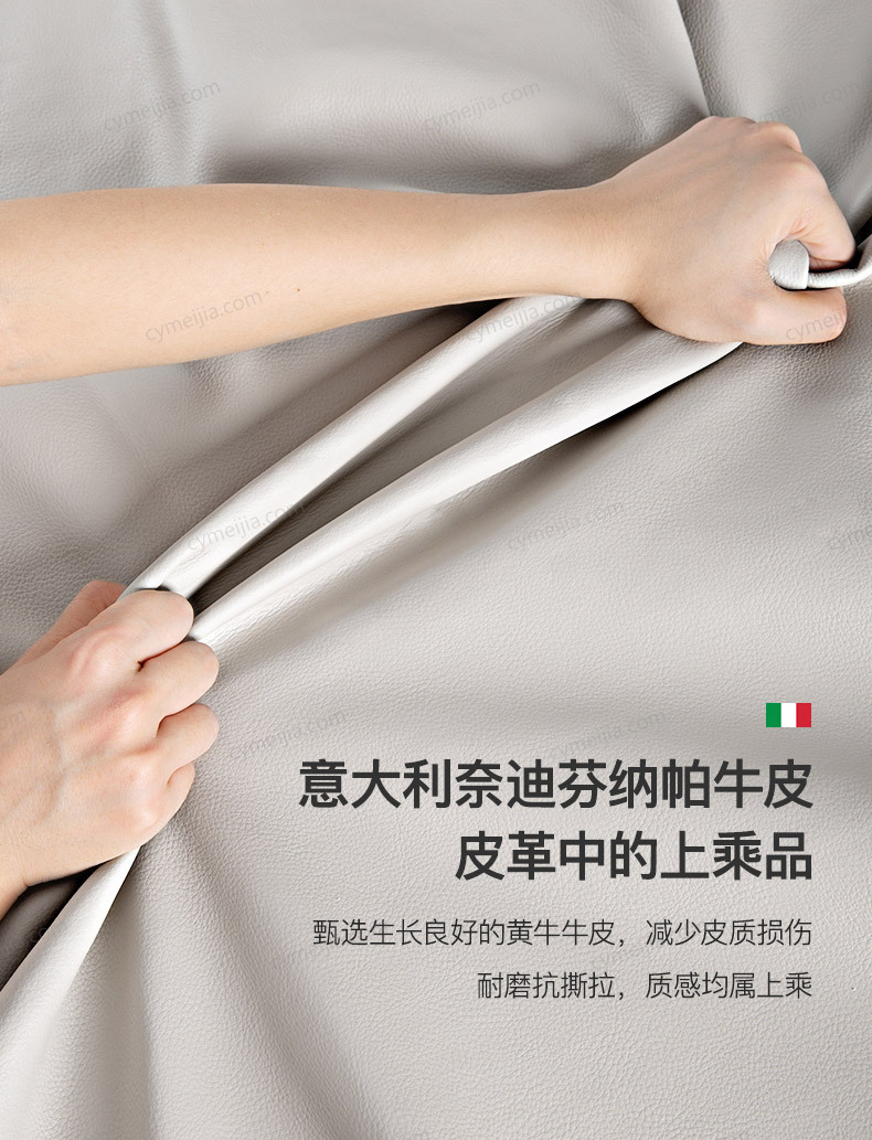 | 产品材质 : | 接触面进口头层黄牛皮+高密度海绵+俄罗斯落叶松实木框架+电镀钛金脚+10公分松木排骨架 |