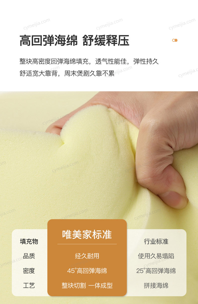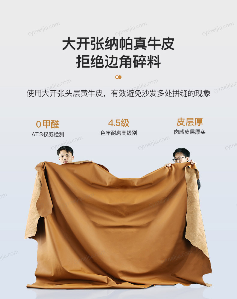 | 产品材质 : | 接触面进口头层黄牛皮+高密度海绵+俄罗斯落叶松实木框架+电镀钛金脚+10公分松木排骨架 |