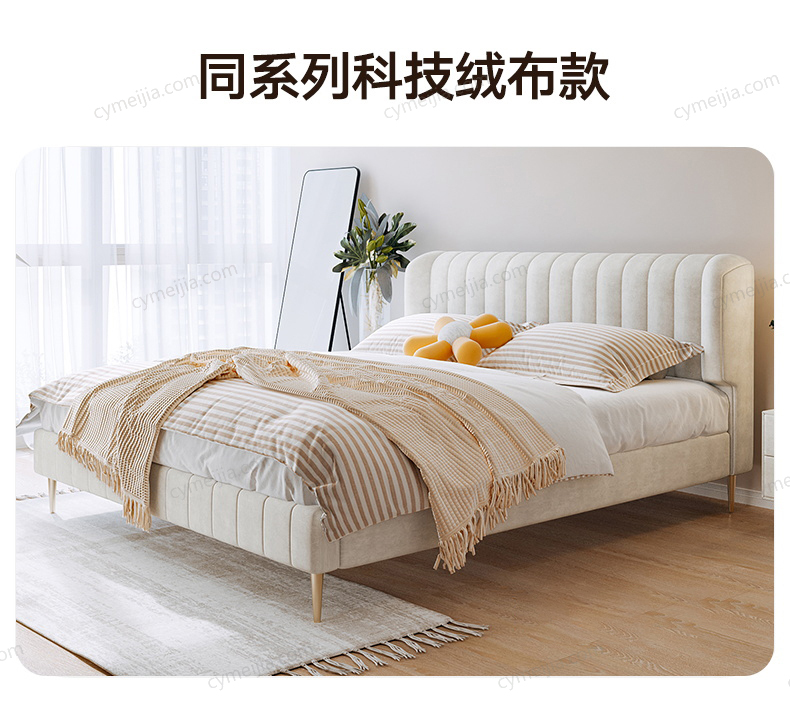 | 产品材质 : | 磨砂布+高回弹海绵+松木方+实木多层板+10公分松木排骨架+电镀金色脚 |