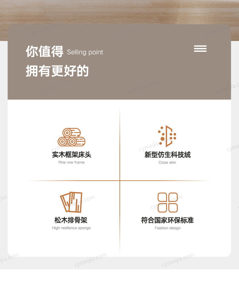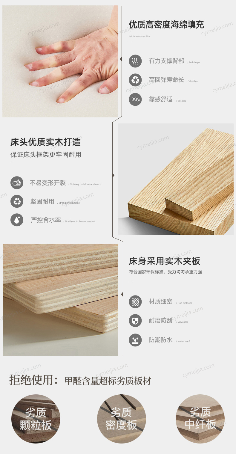 | 适配床垫 : | 长2000*宽1800*厚180-220mm |