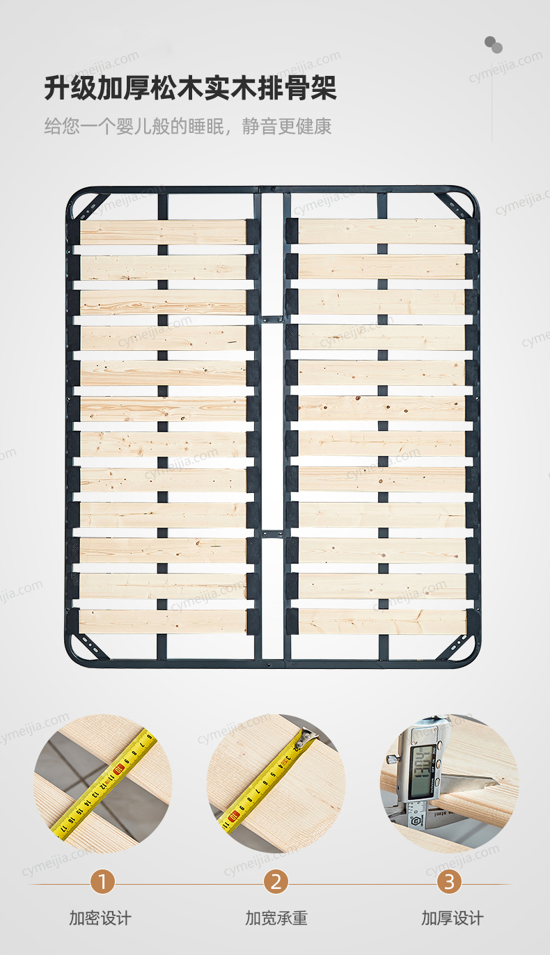 | 适配床垫 : 长2000*宽1800*厚180-220mm | 包件数 : 3 | 床结构 : 排骨架 | |