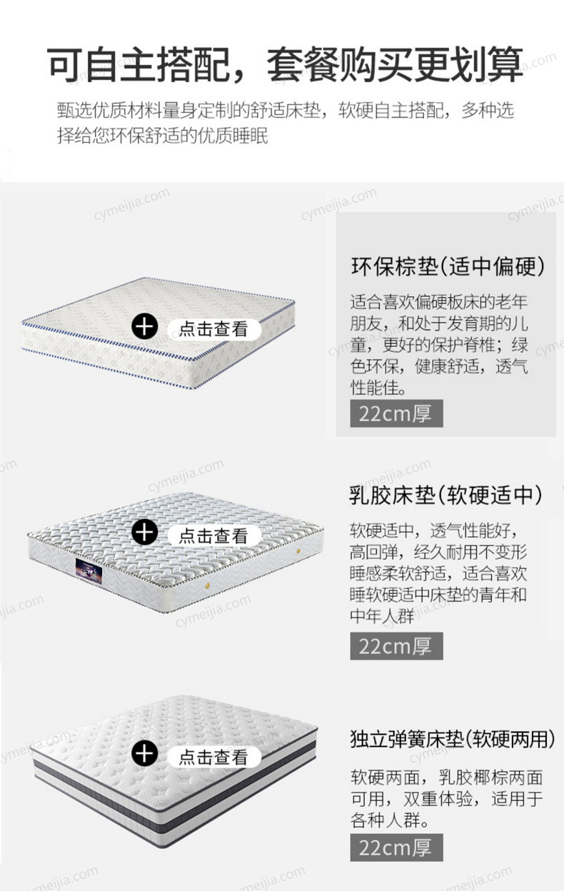 | 适配床垫 : | 长2000*宽1500*厚220-250mm |