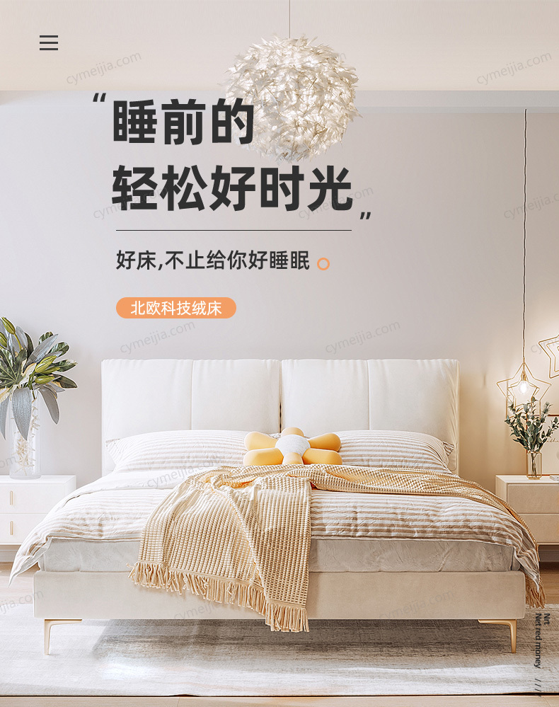 | 适配床垫 : | 长2000*宽1500*高200-230mm |