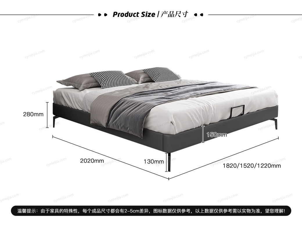 | 适配床垫 : | 长2000*宽1200*高220mm |