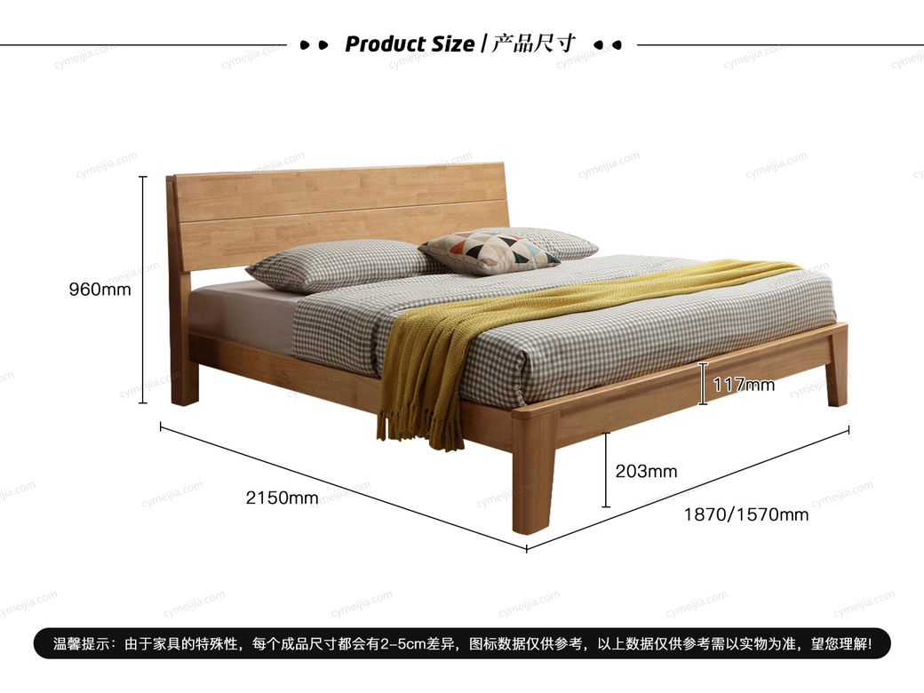 | 产品材质 : | 床头: 橡胶木 床侧:橡胶木 床尾: 橡胶木 床脚: 橡胶木 内架: 松木 床板条:松木 |