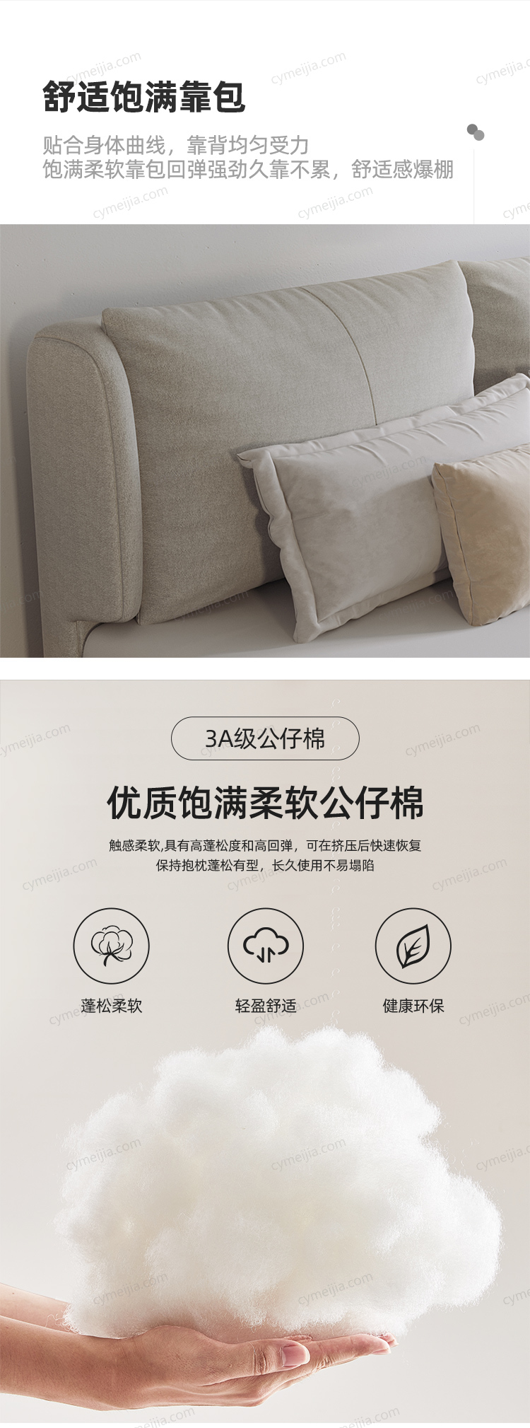 | 产品材质 : | 磨砂布+羽绒+公仔棉+实木排骨架+碳素钢五金脚 |