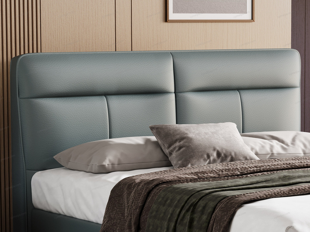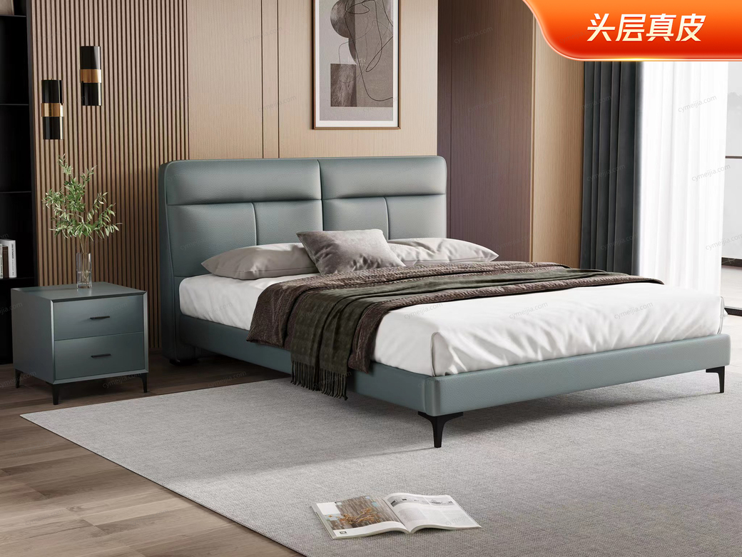 | 产品材质 : | 接触面进口头层牛皮+高回弹海绵+实木床架+10公分松木排骨架 |