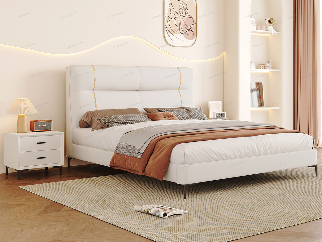 | 产地 : 佛山 | 颜色 : 白色 | 产品材质 : 接触面进口头层黄牛皮+高密度海绵+俄罗斯落叶松实木框架+碳素钢脚+10公分松木排骨架 | 更多参数>> |