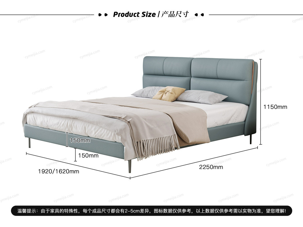 | 适配床垫 : | 长2000*宽1500*高220-240mm |