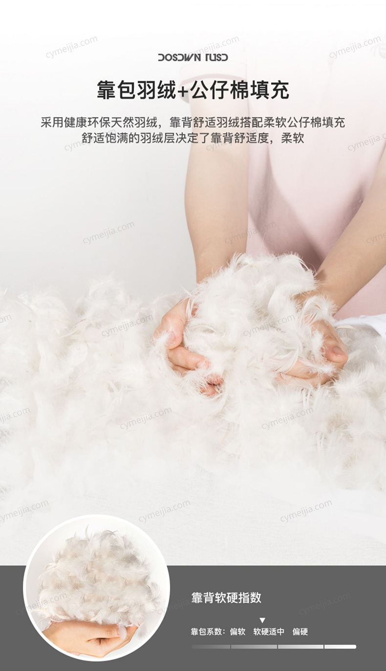 | 产品材质 : | 科技布+羽绒+公仔棉+俄罗斯松木框架+金属脚+10公分松木排骨架 |