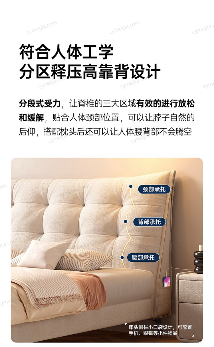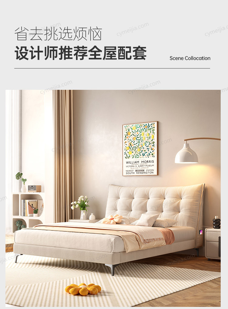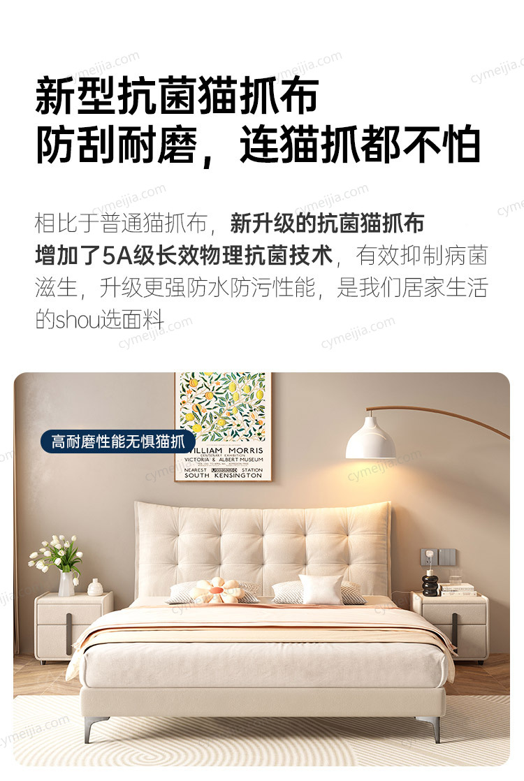 | 产品材质 : | 猫抓布+高密度海绵+俄落叶松实木框架+金属脚+10公分松木排骨架 |