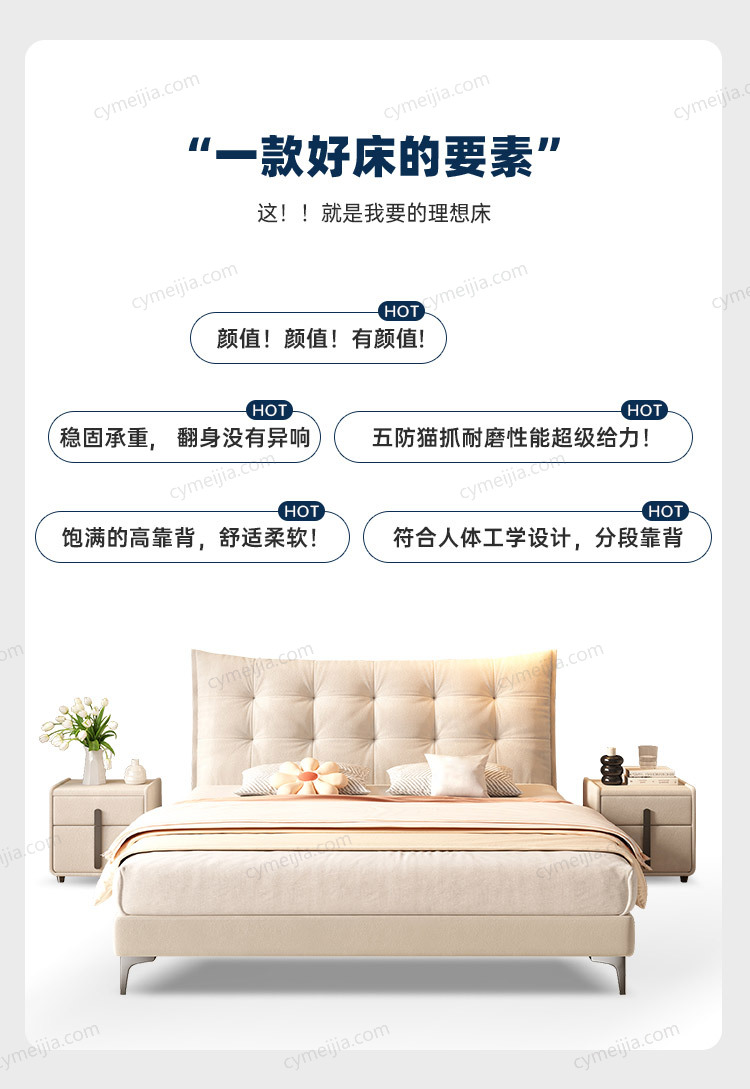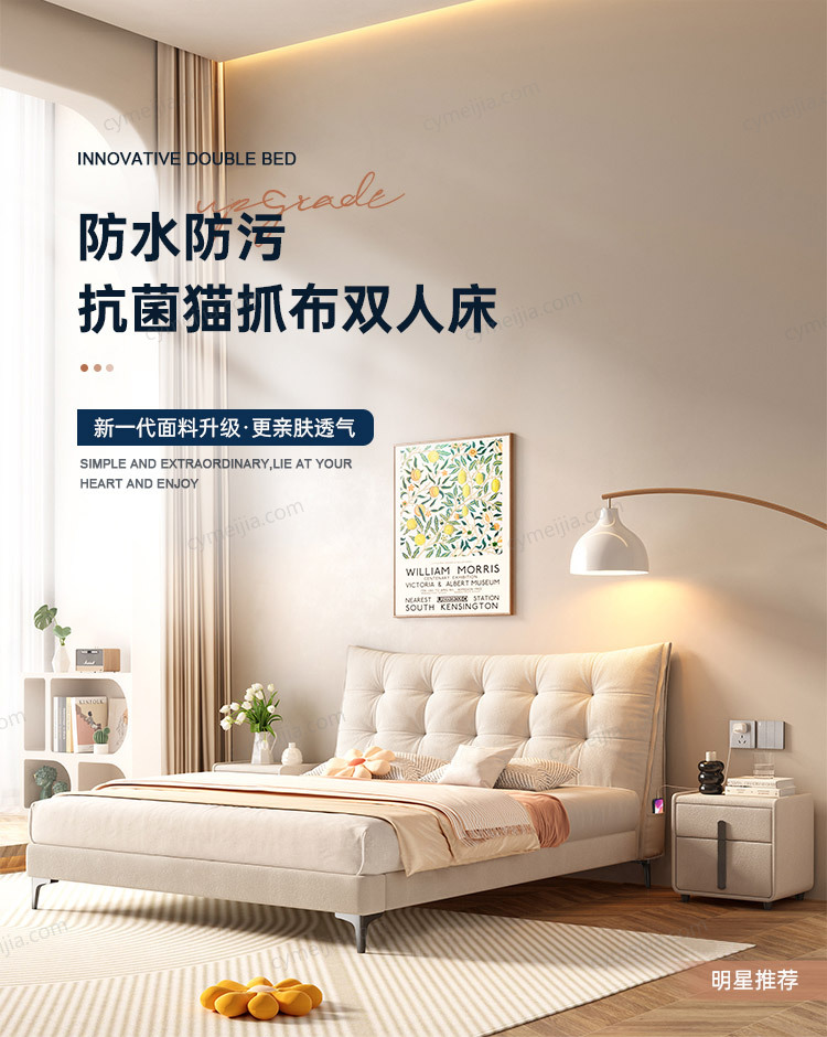 | 产品材质 : | 猫抓布+高密度海绵+俄落叶松实木框架+金属脚+10公分松木排骨架 |